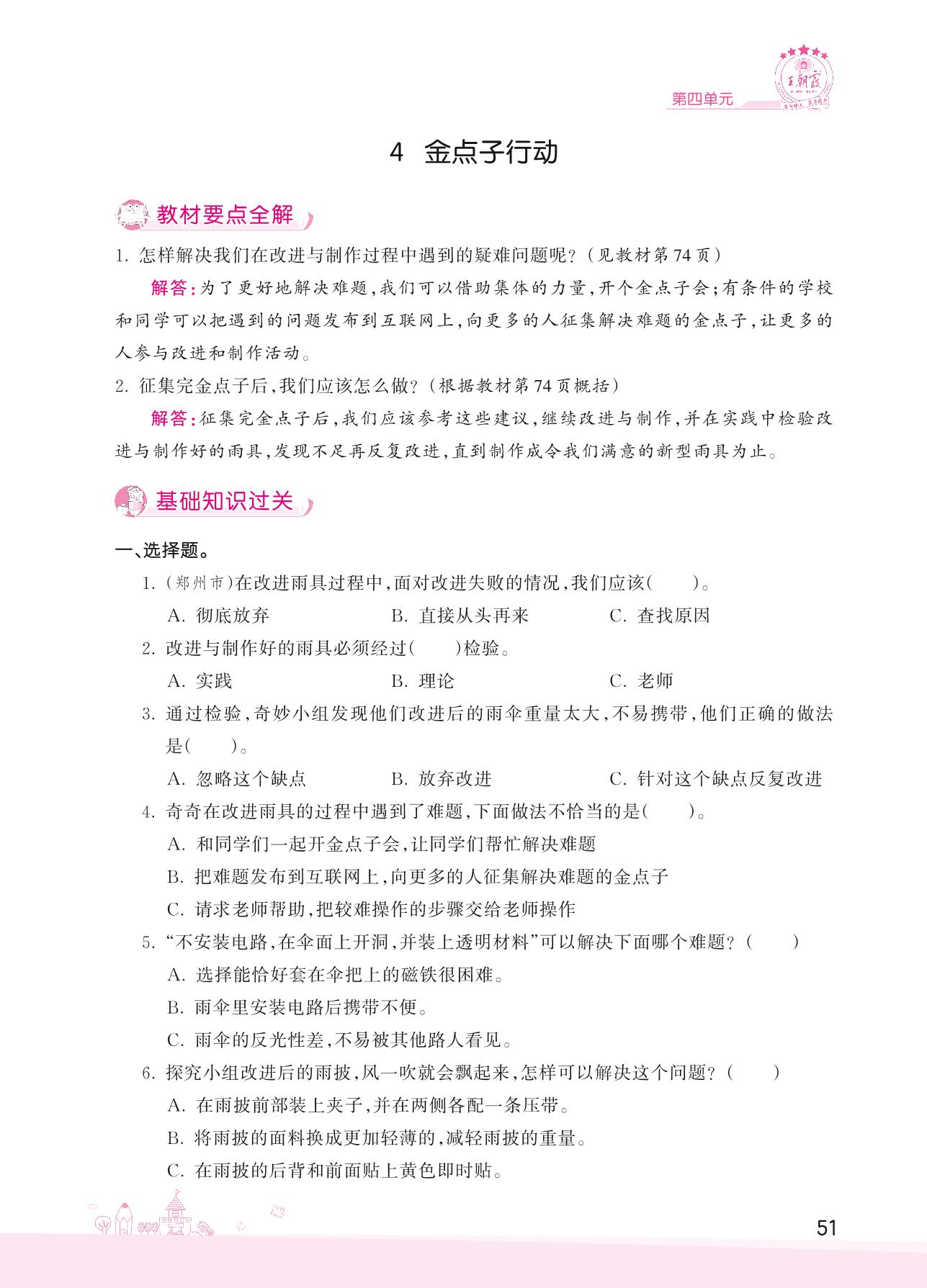 2022下册六年级科学大象版 第四单元 雨具的改进——4 金点子行动