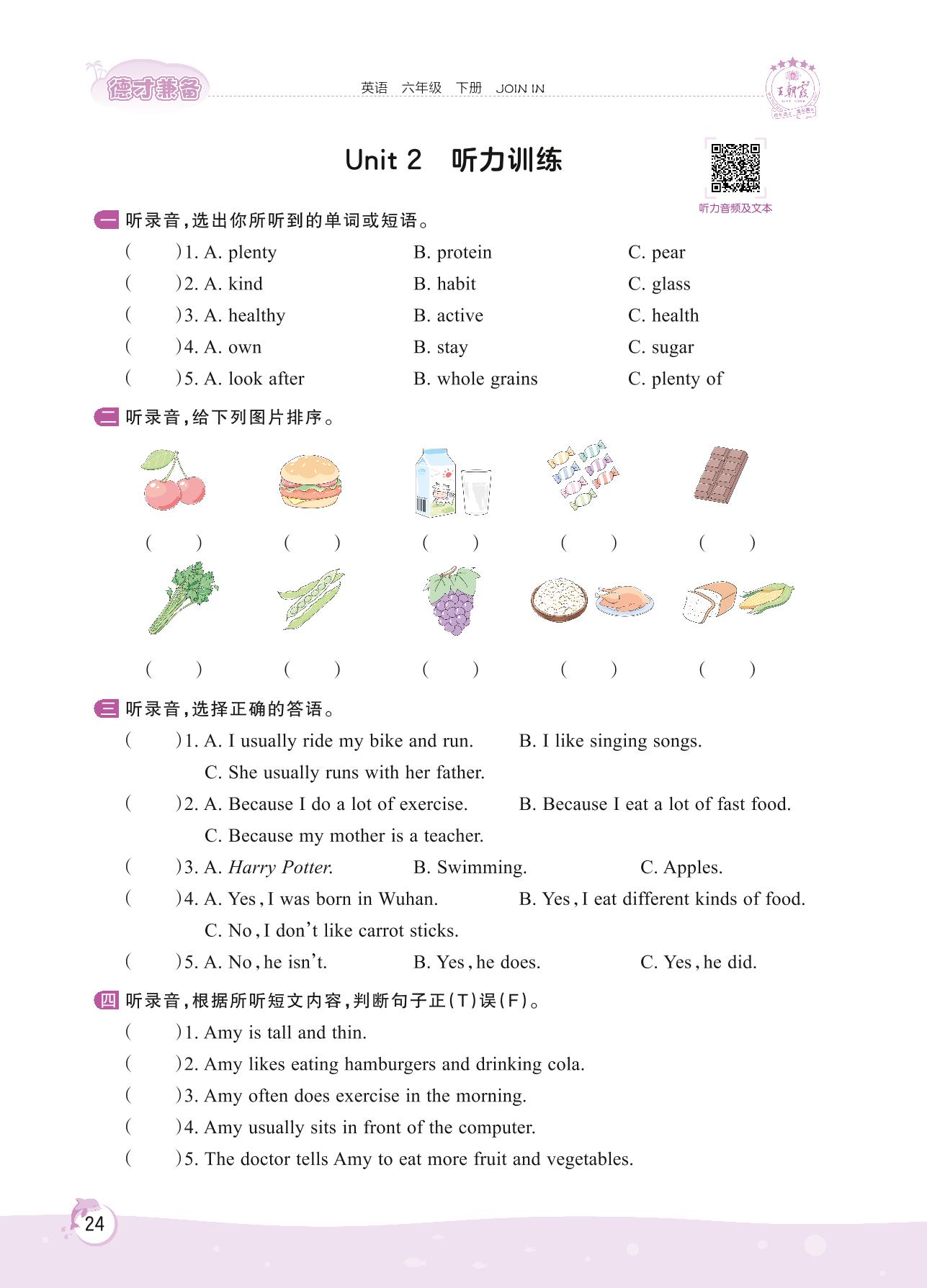 2022下册六年级英语剑桥版 Unit 2 听力训练
