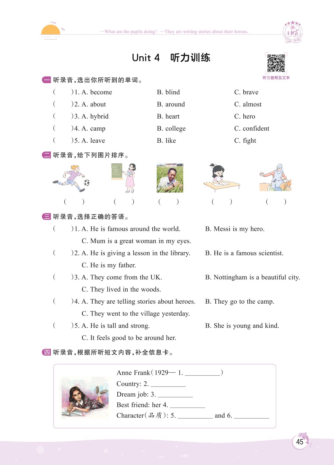2022下册六年级英语剑桥版 Unit 4 听力训练