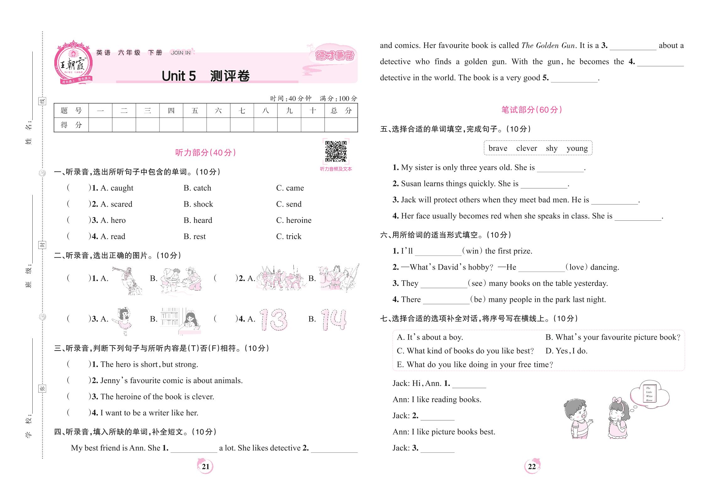2022下册六年级英语剑桥版 Unit 5 测评卷