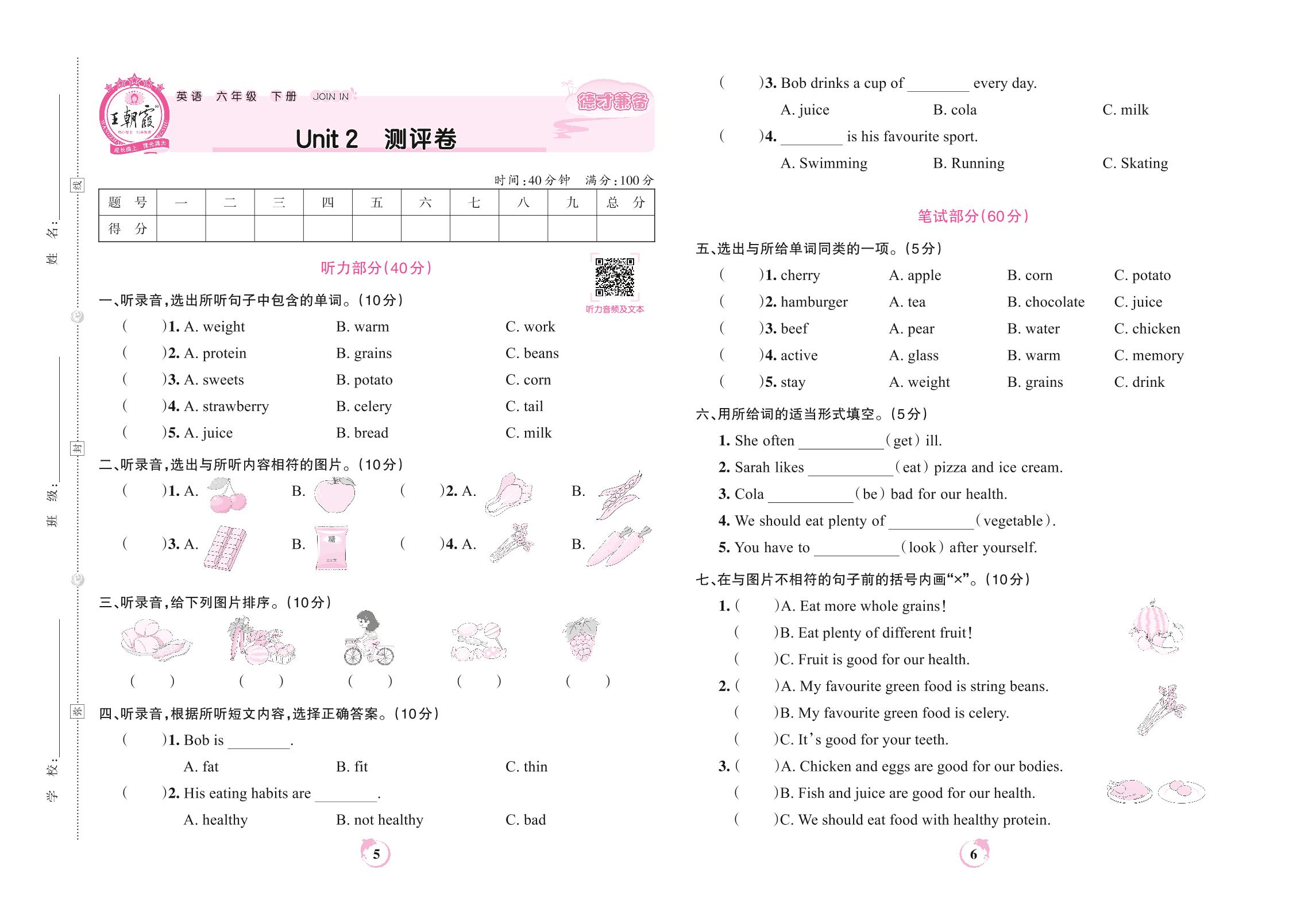 2022下册六年级英语剑桥版 Unit 2 测评卷