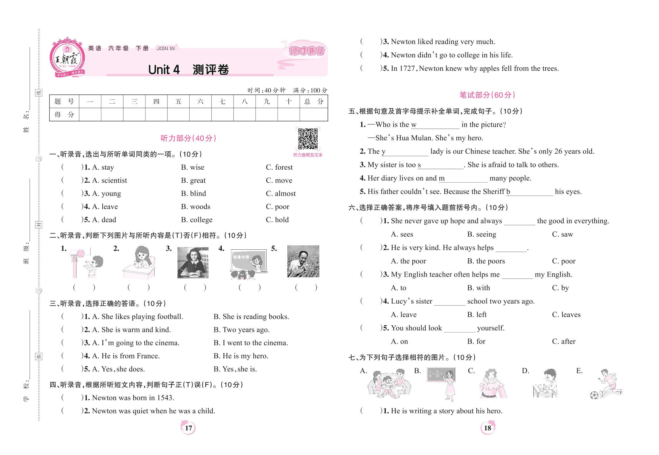2022下册六年级英语剑桥版 Unit 4 测评卷