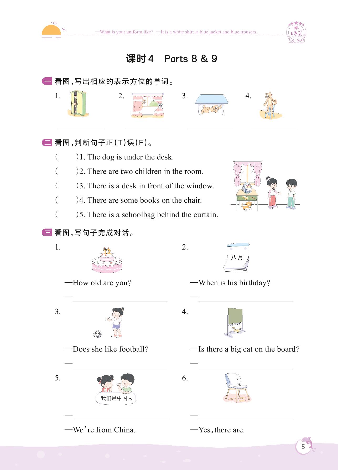 2022下册四年级英语剑桥版 Starter unit—课时 4 Parts 8 & 9