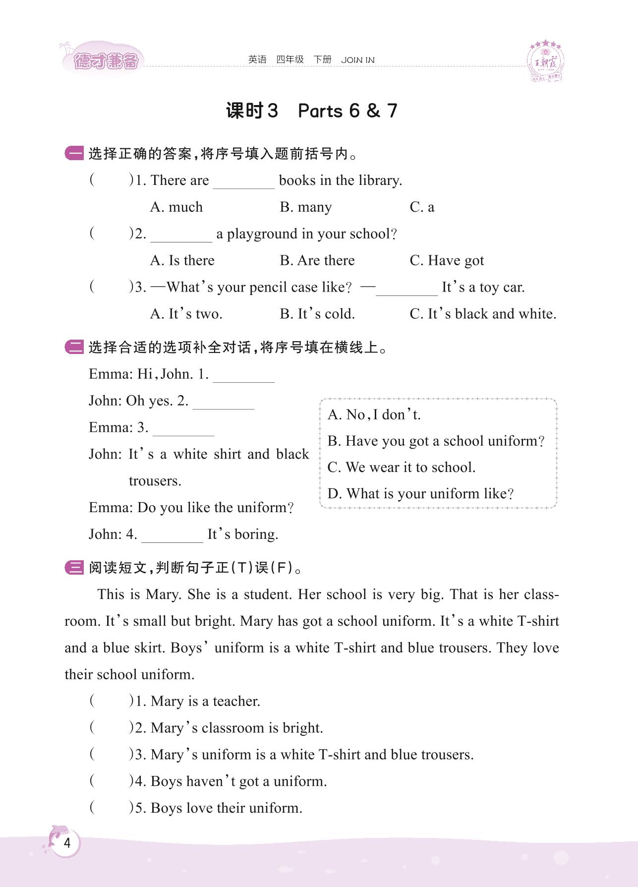 2022下册四年级英语剑桥版 Starter unit—课时 3 Parts 6 & 7