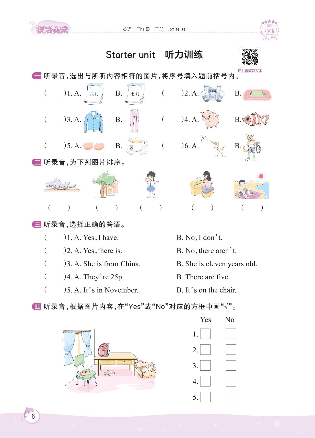 2022下册四年级英语剑桥版 Starter unit 听力训练