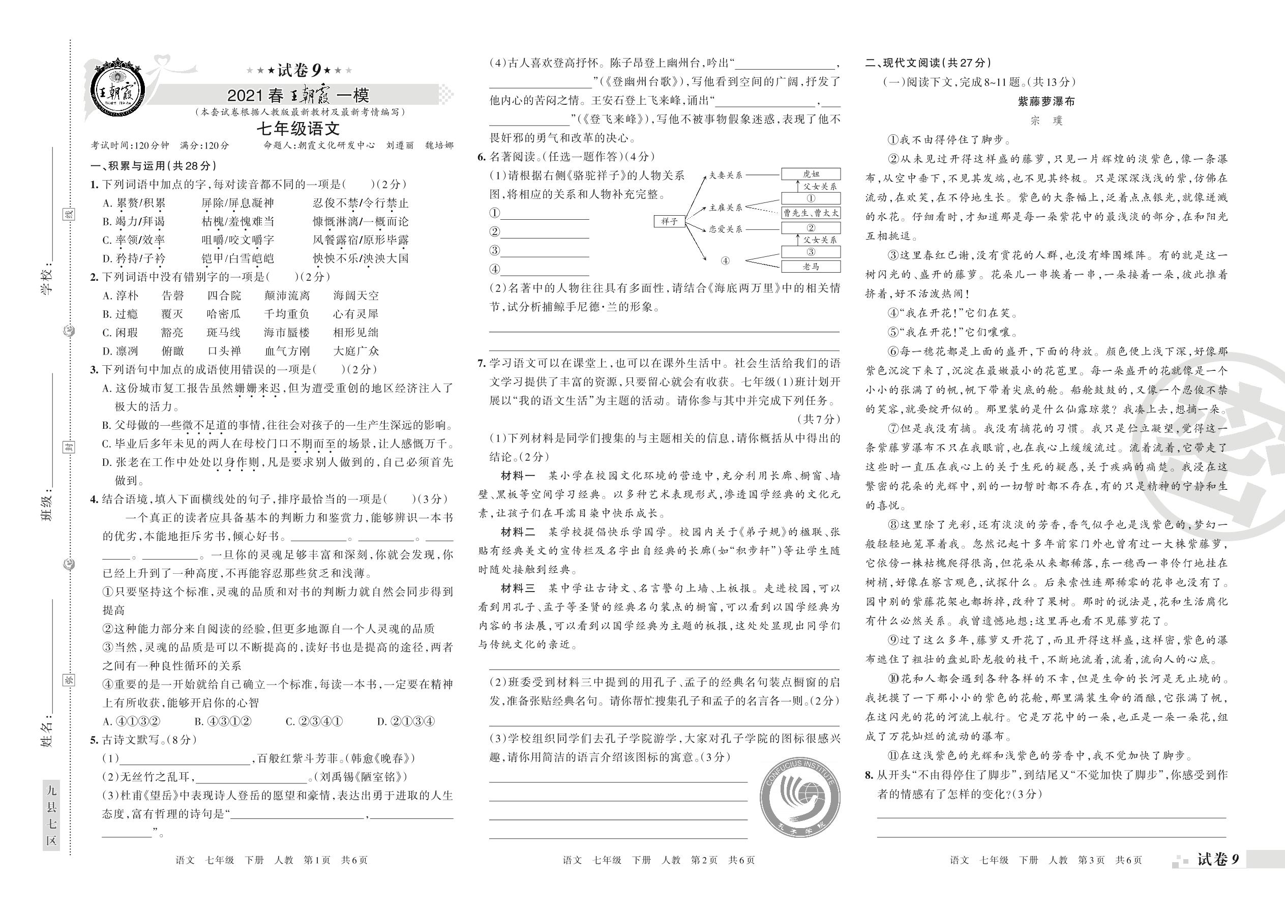 王朝霞期末模拟卷七年级下册语文(人教版)_R210801235658【9】