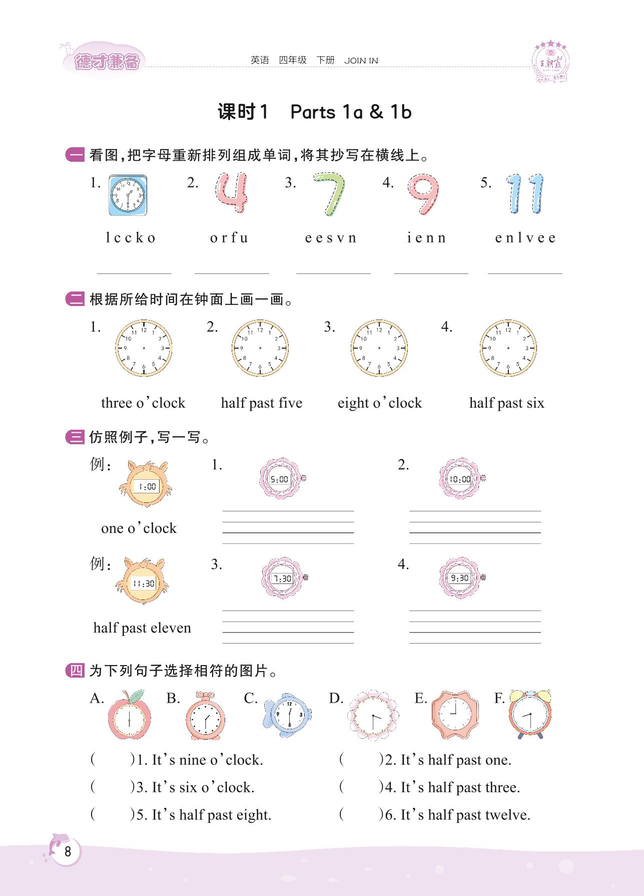 2022下册四年级英语剑桥版 Unit 1—课时 1 Parts 1a & 1b