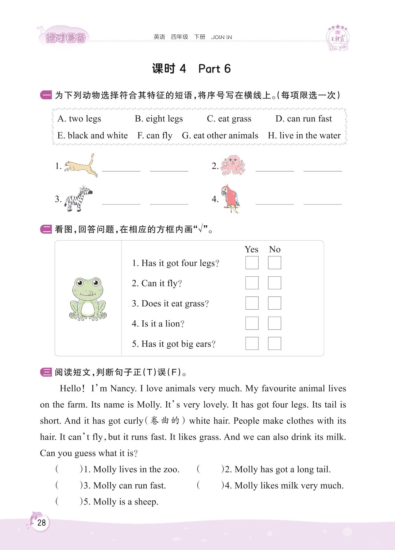 2022下册四年级英语剑桥版 Unit 3—课时 4 Part 6