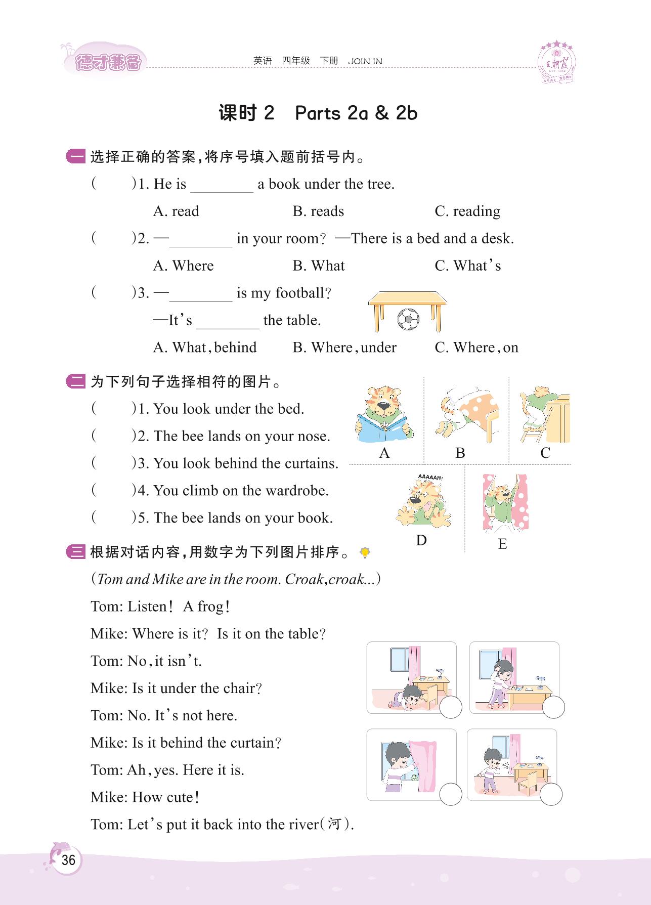 2022下册四年级英语剑桥版 Unit 4—课时 2 Parts 2a & 2b