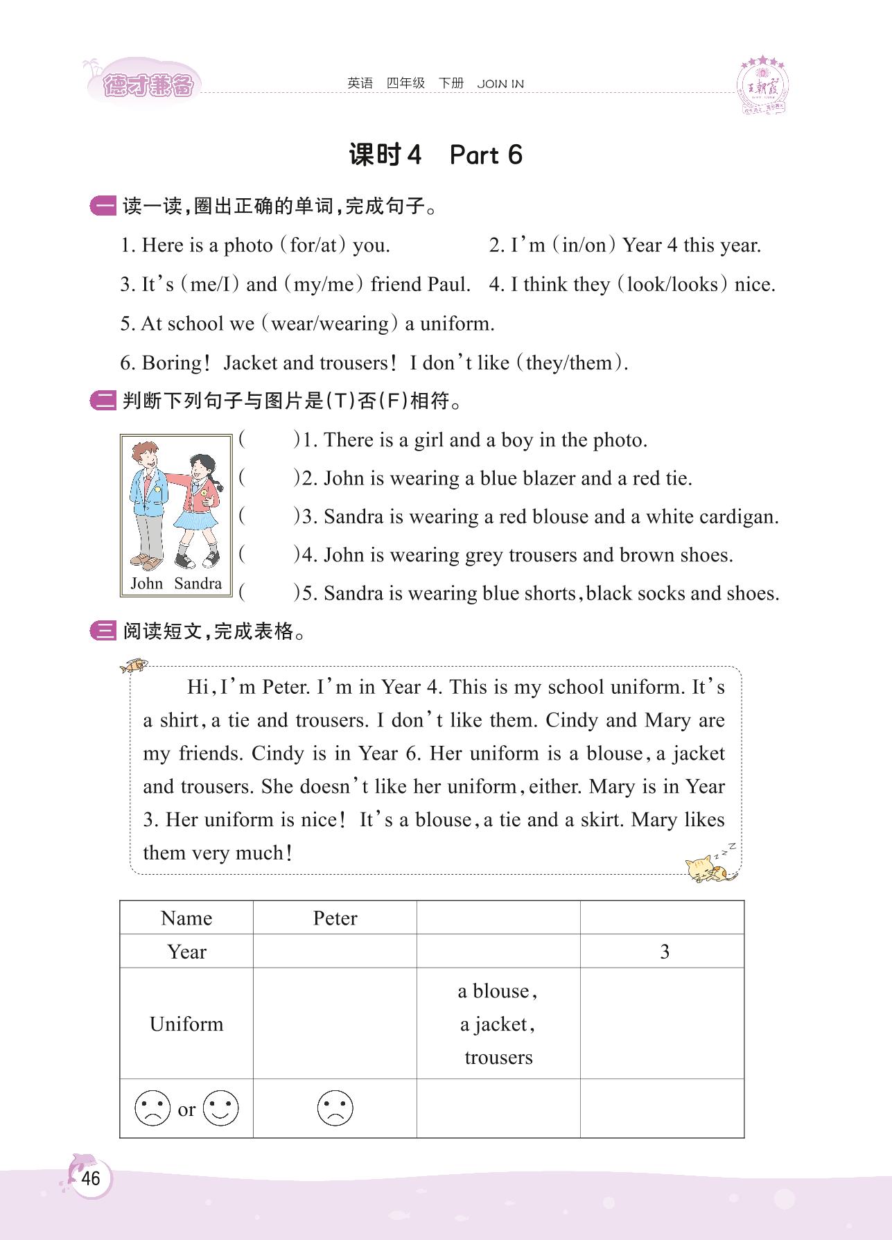 2022下册四年级英语剑桥版 Unit 5—课时 4 Part 6