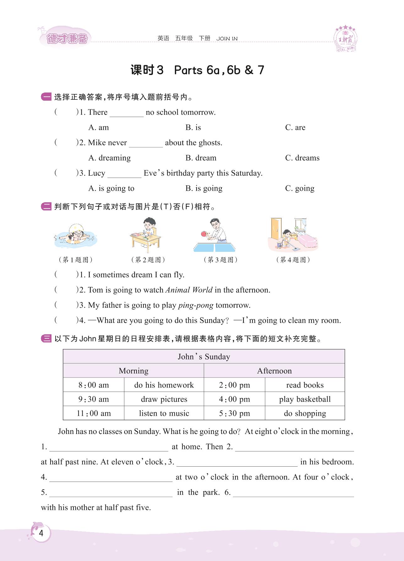 五年级英语剑桥版下册课时作业