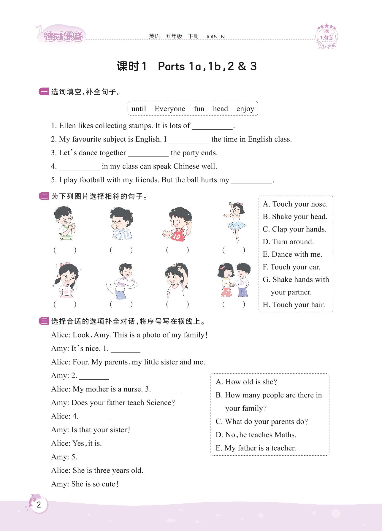 2022下册五年级英语剑桥版 Starter unit—课时 1 Parts 1a,1b,2 & 3
