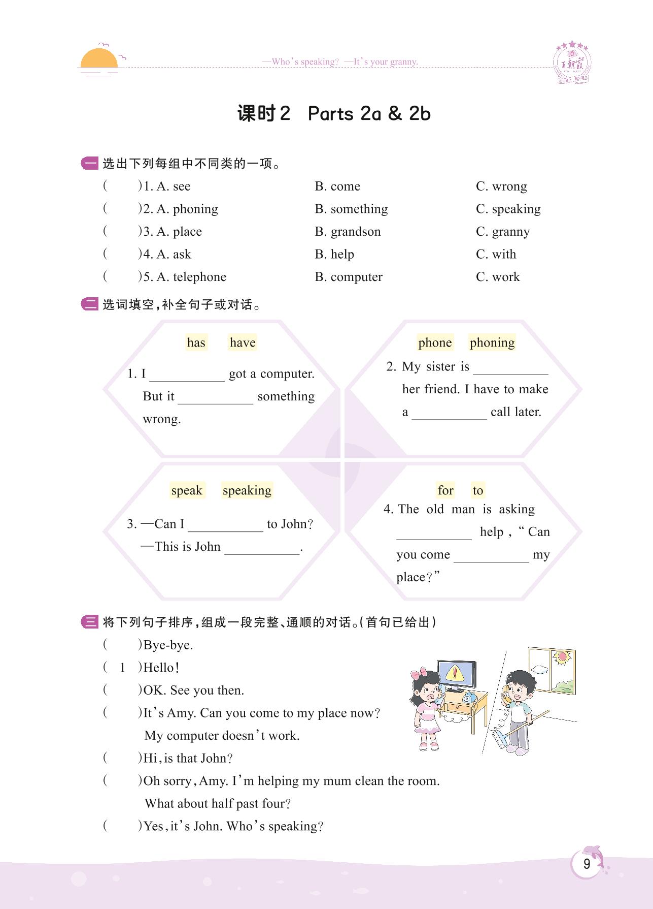 2022下册五年级英语剑桥版 Unit 1—课时 2 Parts 2a & 2b