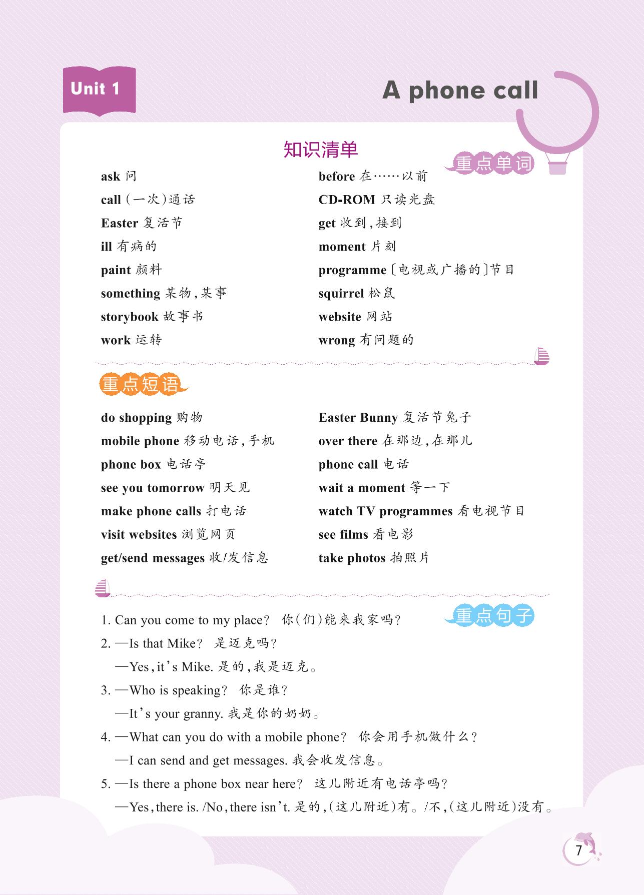 2022下册五年级英语剑桥版 Unit 1 知识清单