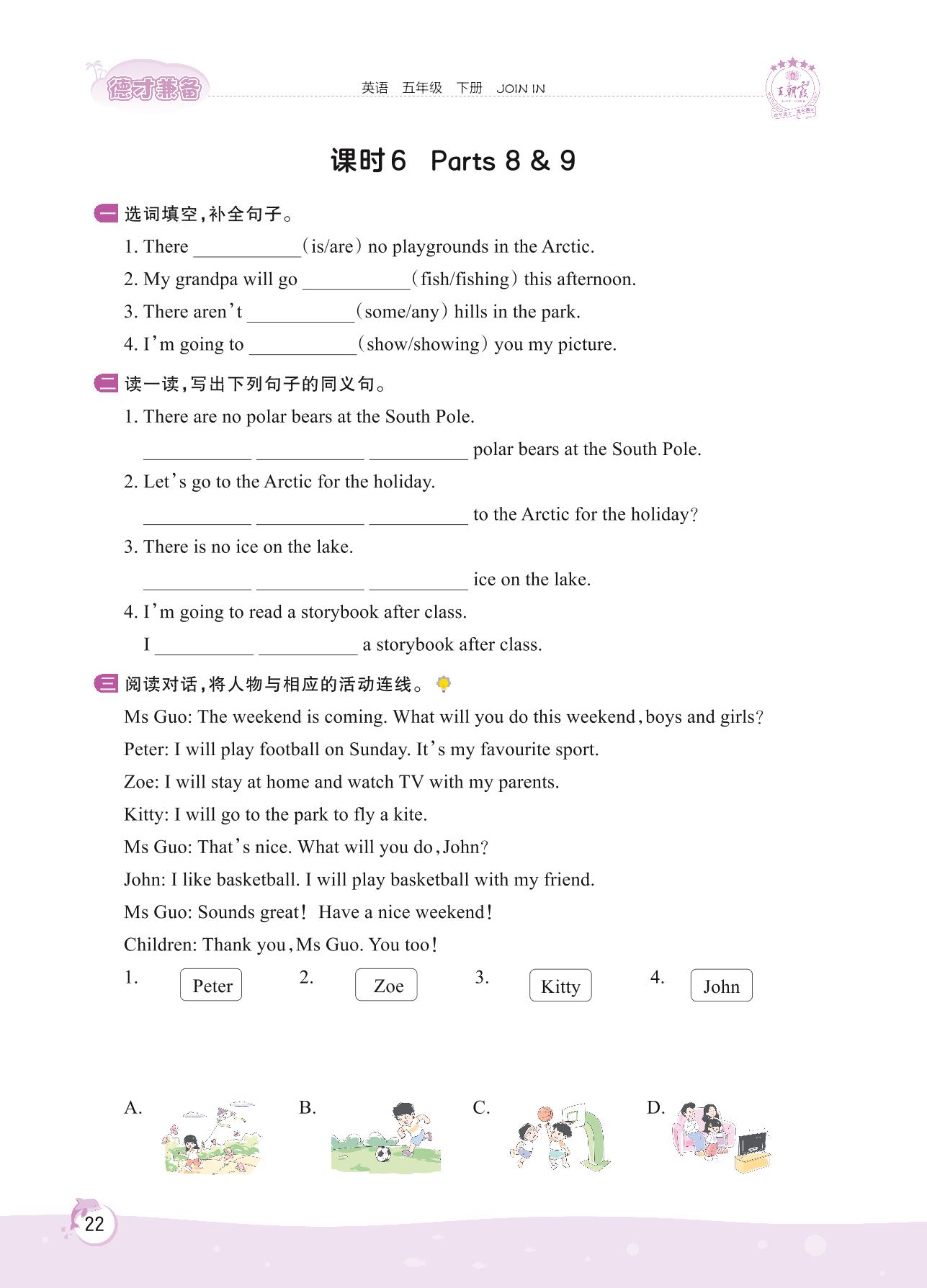 2022下册五年级英语剑桥版 Unit 2—课时 6 Parts 8 & 9