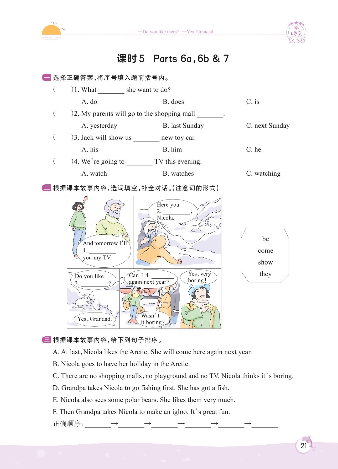 2022下册五年级英语剑桥版 Unit 2—课时 5 Parts 6a,6b & 7