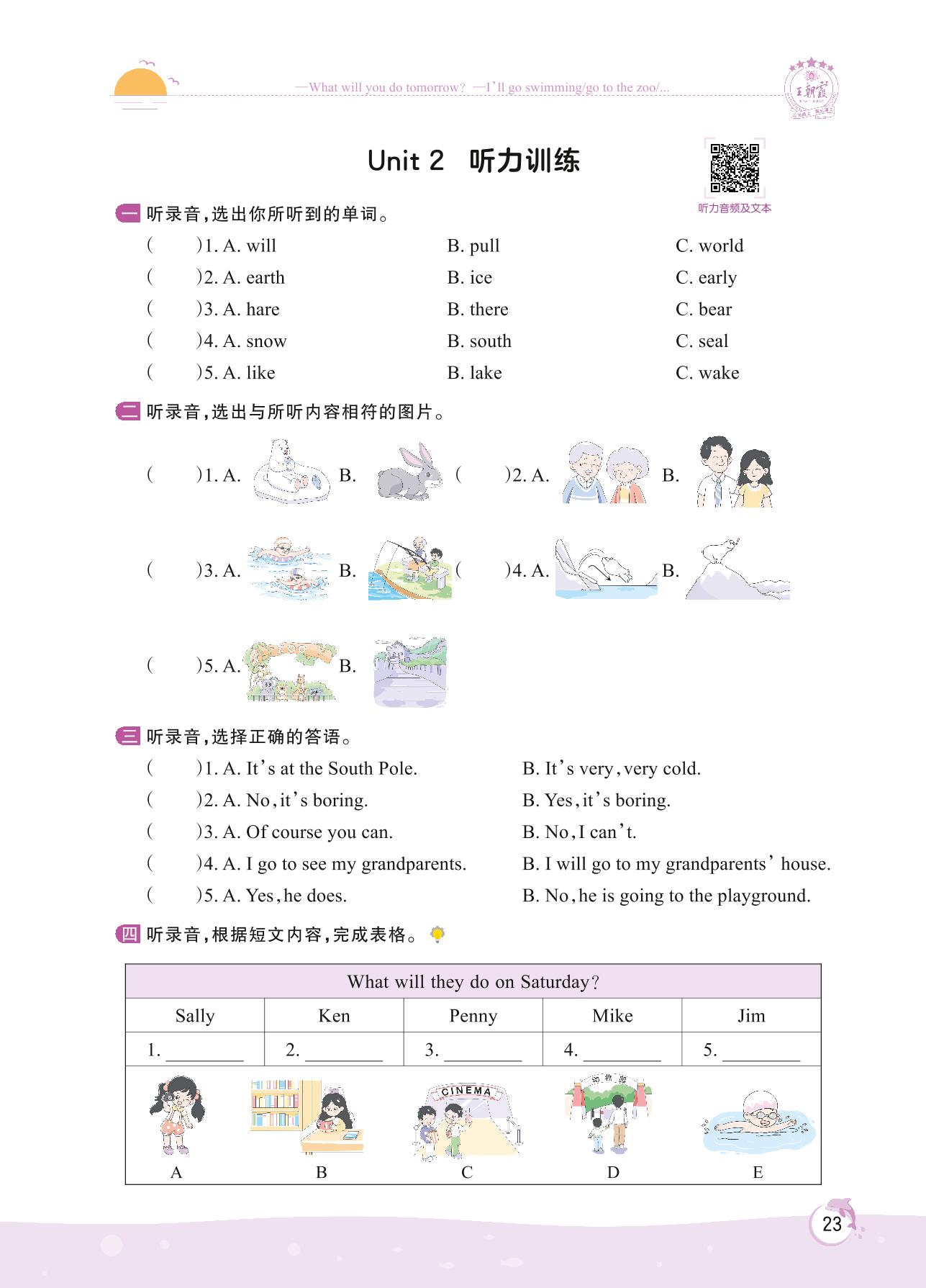 2022下册五年级英语剑桥版 Unit 2 听力训练