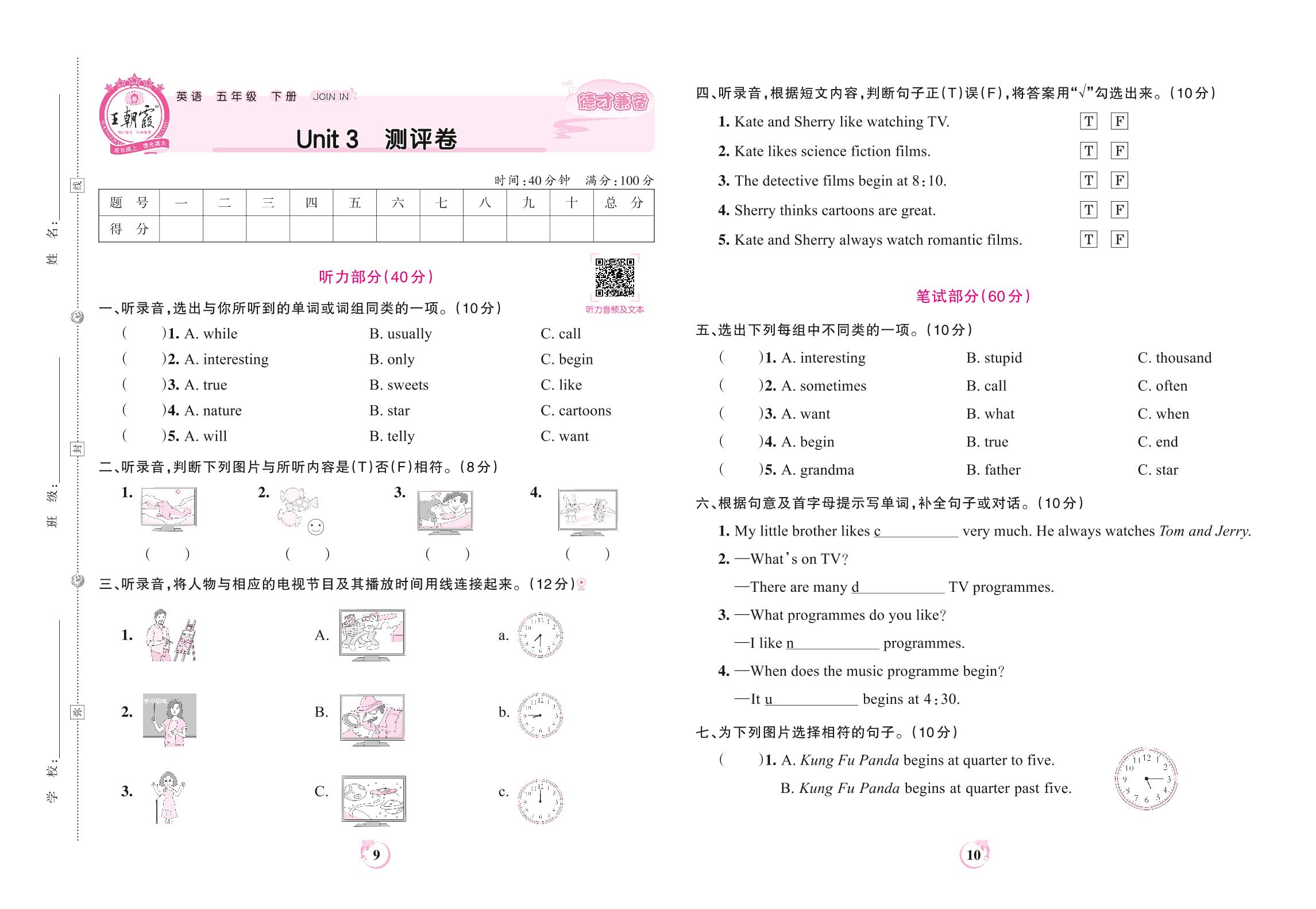 2022下册五年级英语剑桥版 Unit 3 测评卷