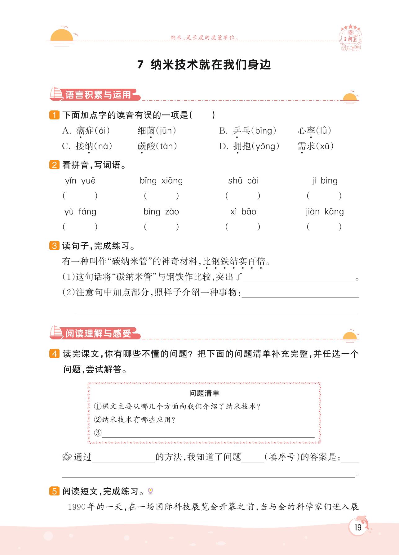 2022下册四年级语文人教版 第二单元 自然、科技——7 纳米技术就在我们身边