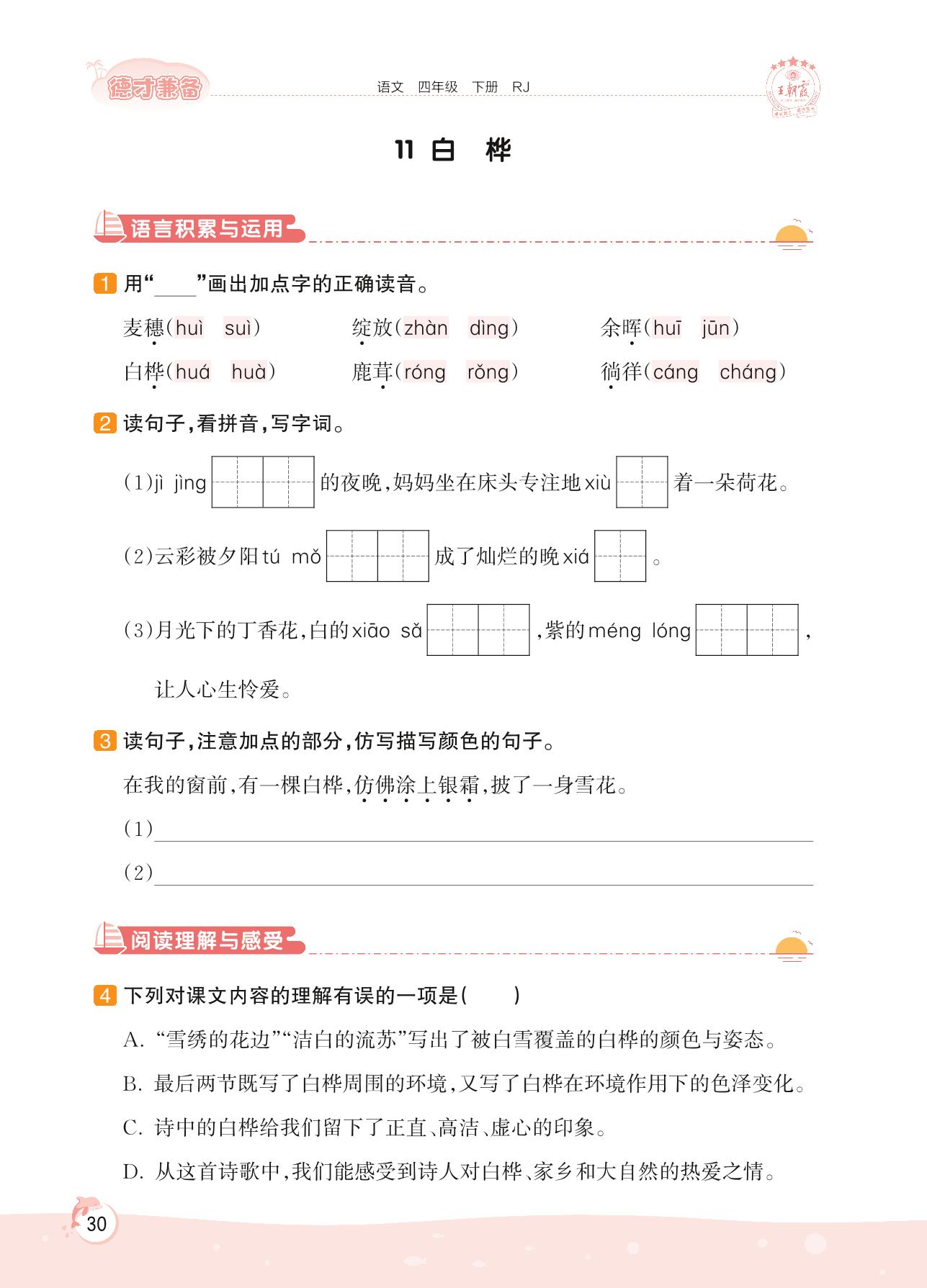 2022下册四年级语文人教版 第三单元 现代诗歌——11 白桦