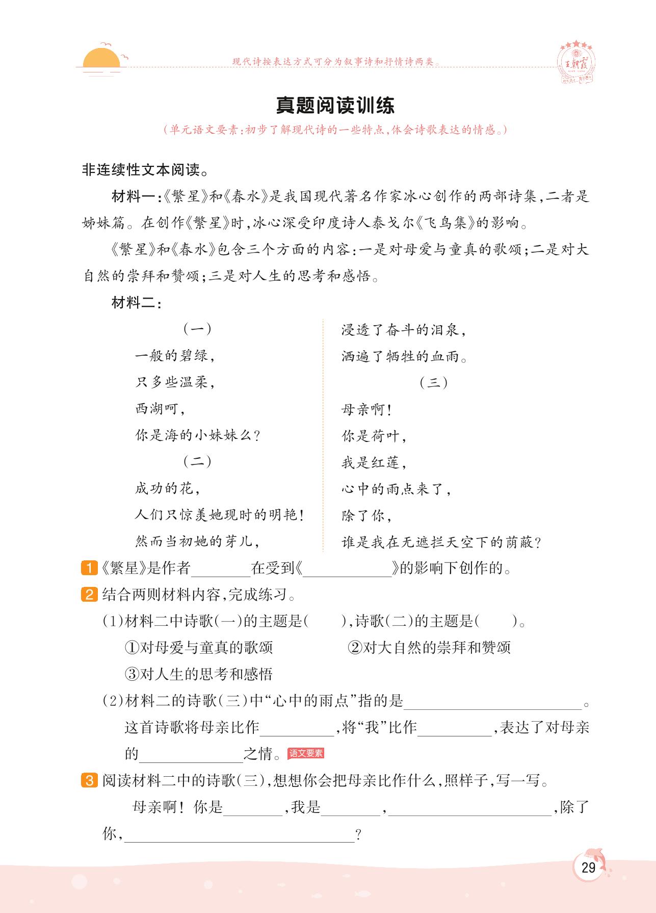 2022下册四年级语文人教版 第三单元 现代诗歌——真题阅读训练