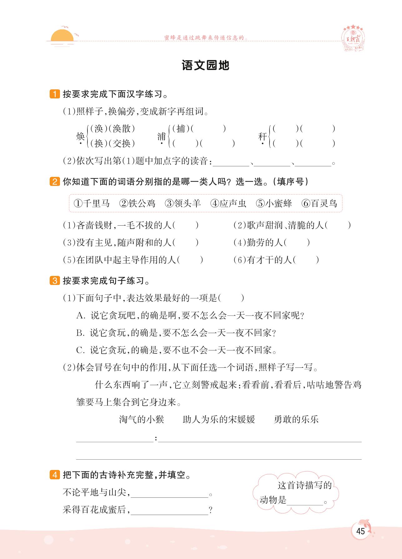 2022下册四年级语文人教版 第四单元 作者笔下的动物——语文园地