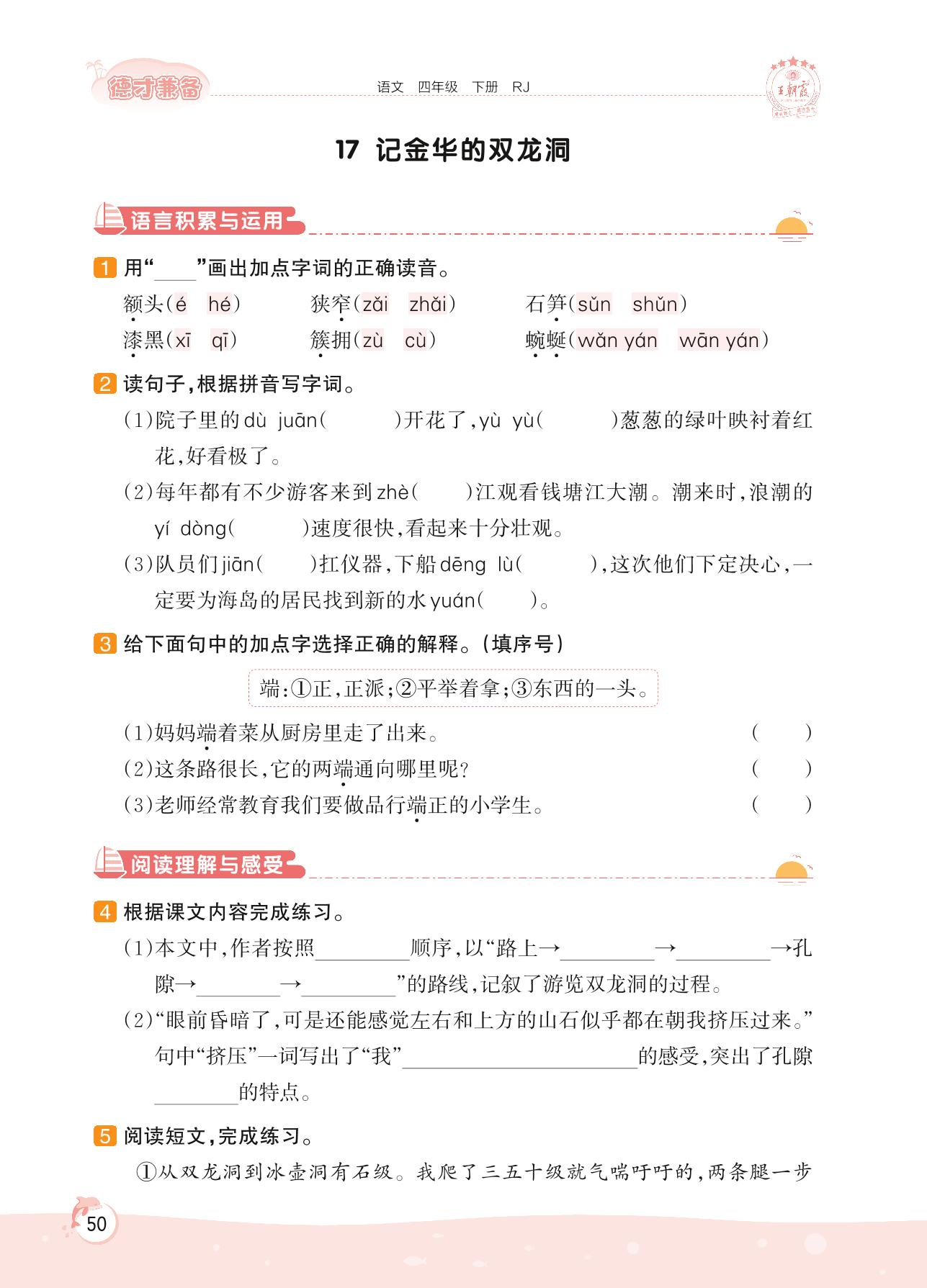 2022下册四年级语文人教版 第五单元 习作——17 记金华的双龙洞