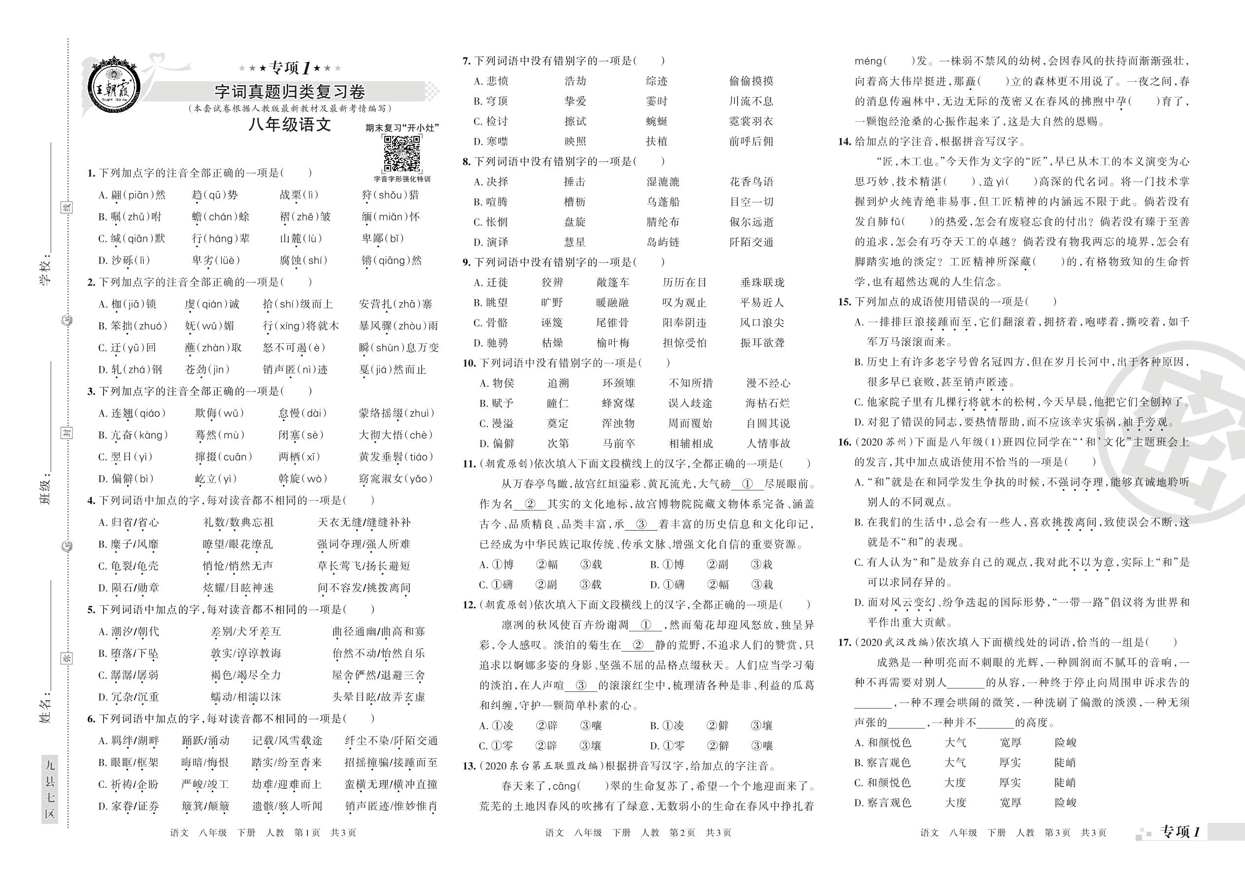 王朝霞期末专项卷——字词、句子真题归类复习八年级下册语文(人教版)_R210801235858【0】