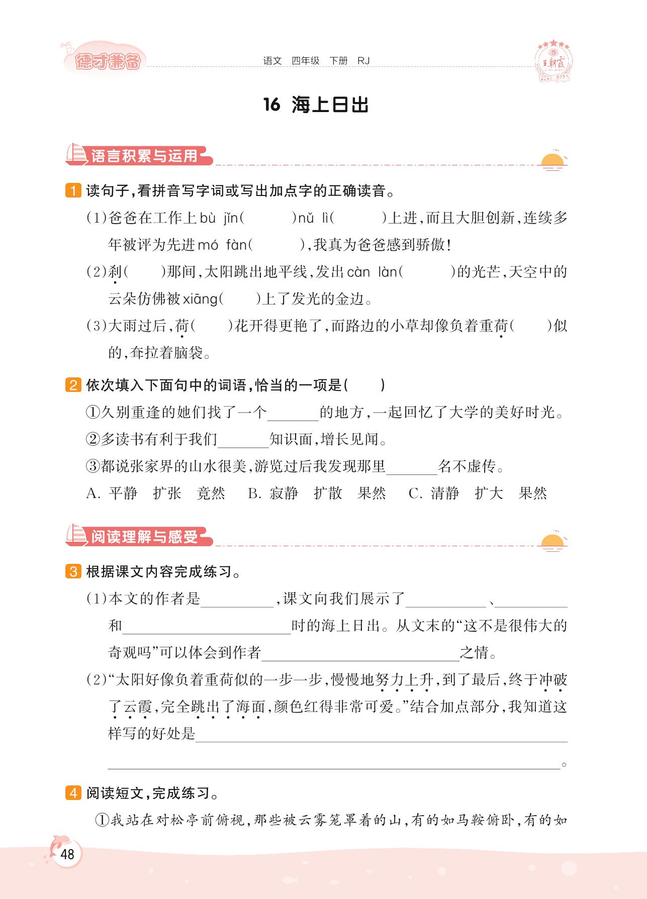 2022下册四年级语文人教版 第五单元 习作——16 海上日出