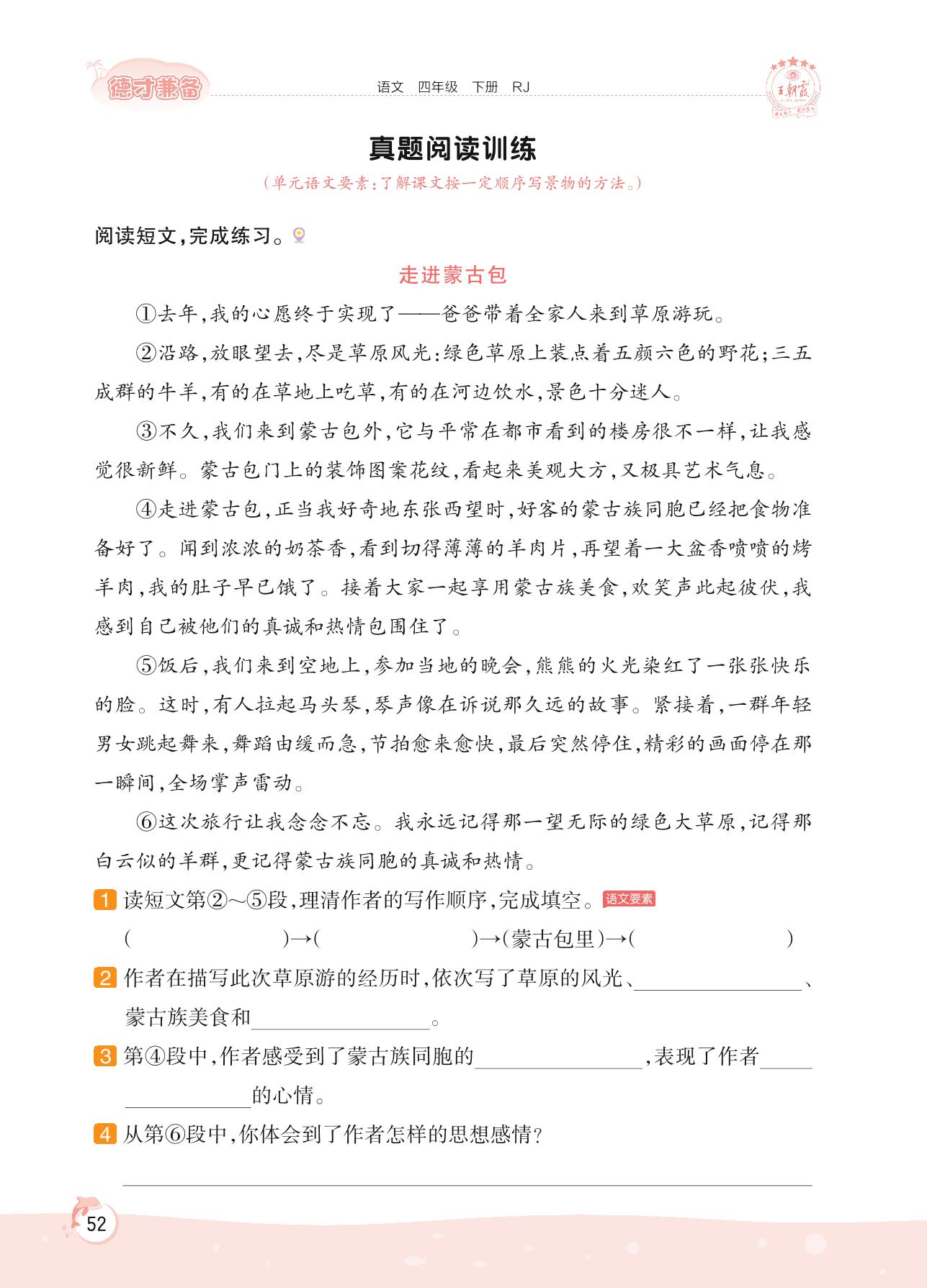 2022下册四年级语文人教版 第五单元 习作——真题阅读训练