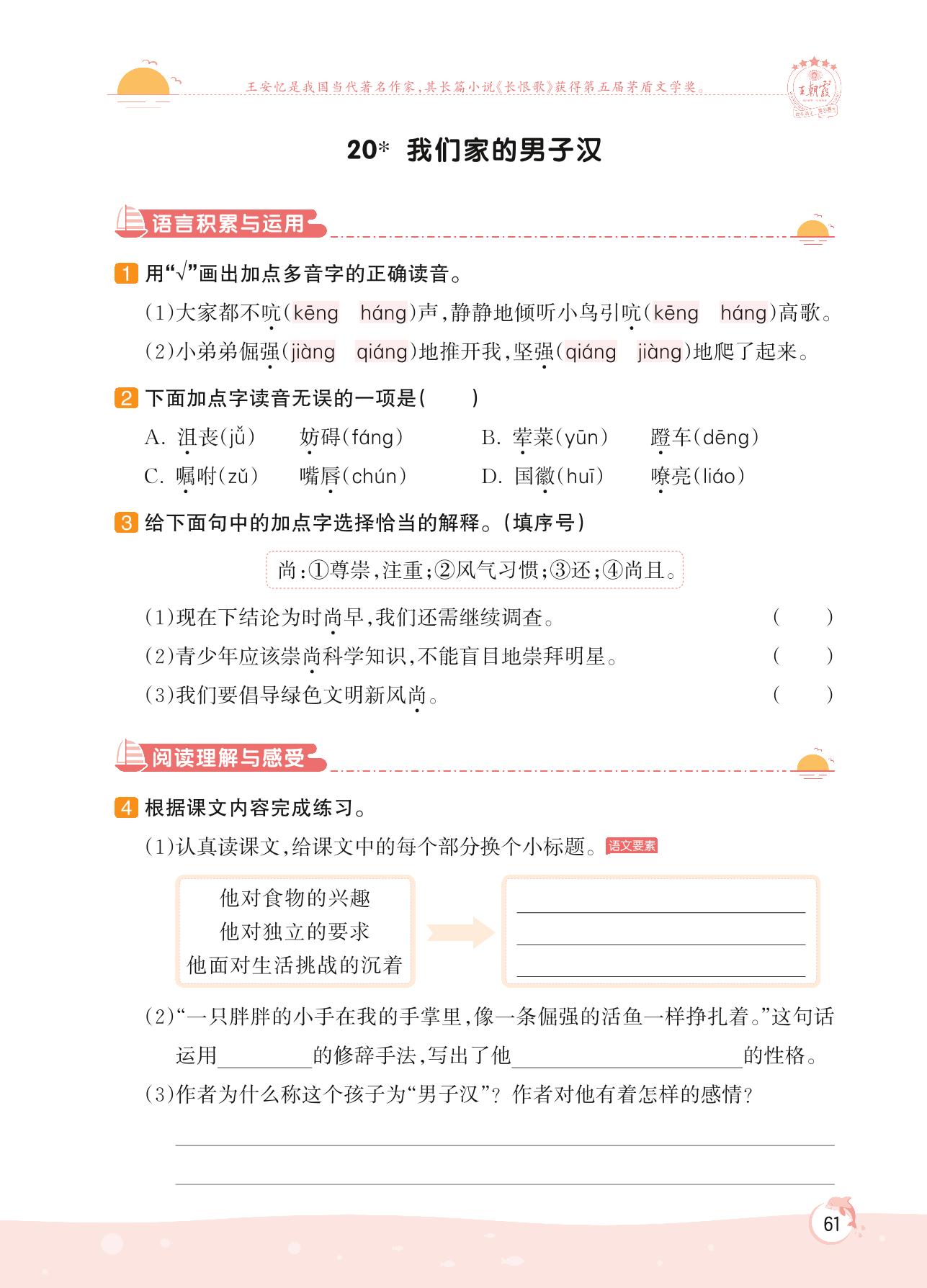 2022下册四年级语文人教版 第六单元 成长——20 我们家的男子汉