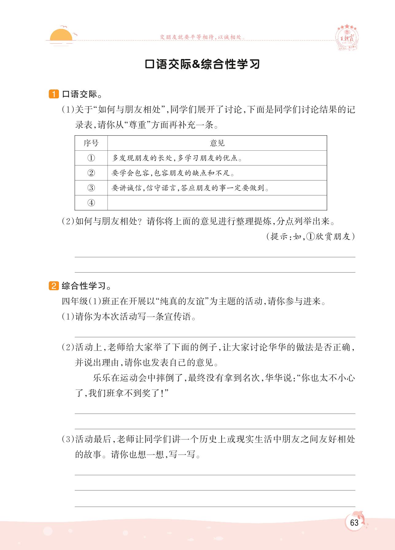 2022下册四年级语文人教版 第六单元 成长——口语交际&综合性学习