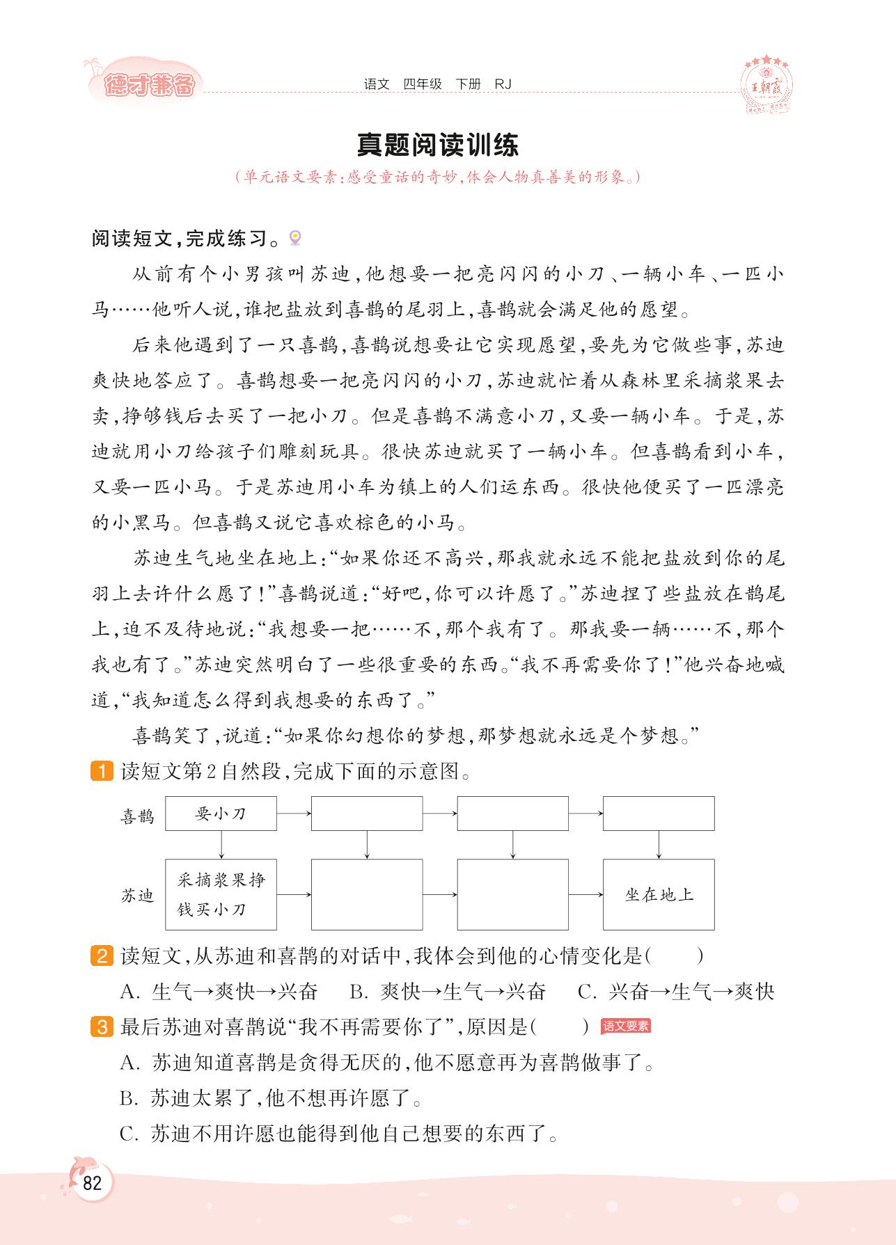 2022下册四年级语文人教版 第八单元 中外经典童话——真题阅读训练