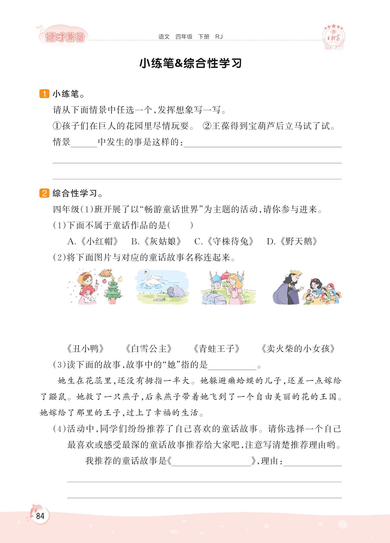 2022下册四年级语文人教版 第八单元 中外经典童话——小练笔&综合性学习