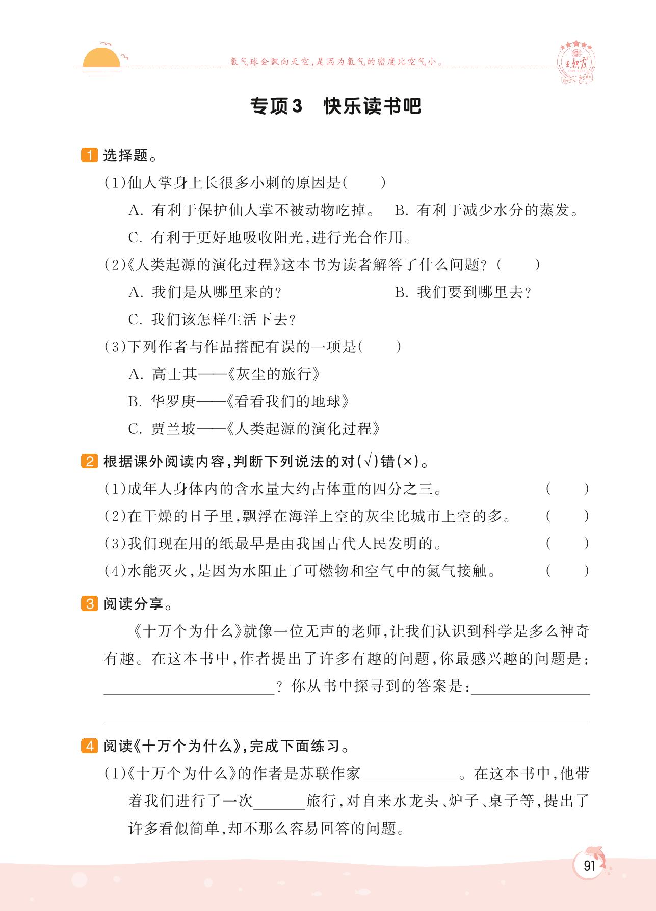2022下册四年级语文人教版 新题新视野 专项训练——专项3 快乐读书吧