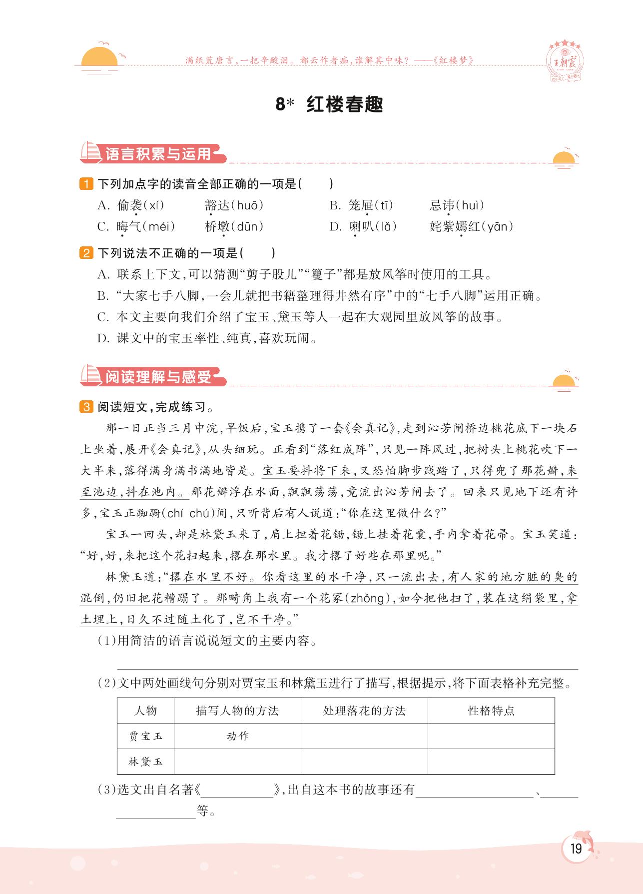 2022下册五年级语文人教版 第二单元 走进中国古典名著——8 红楼春趣