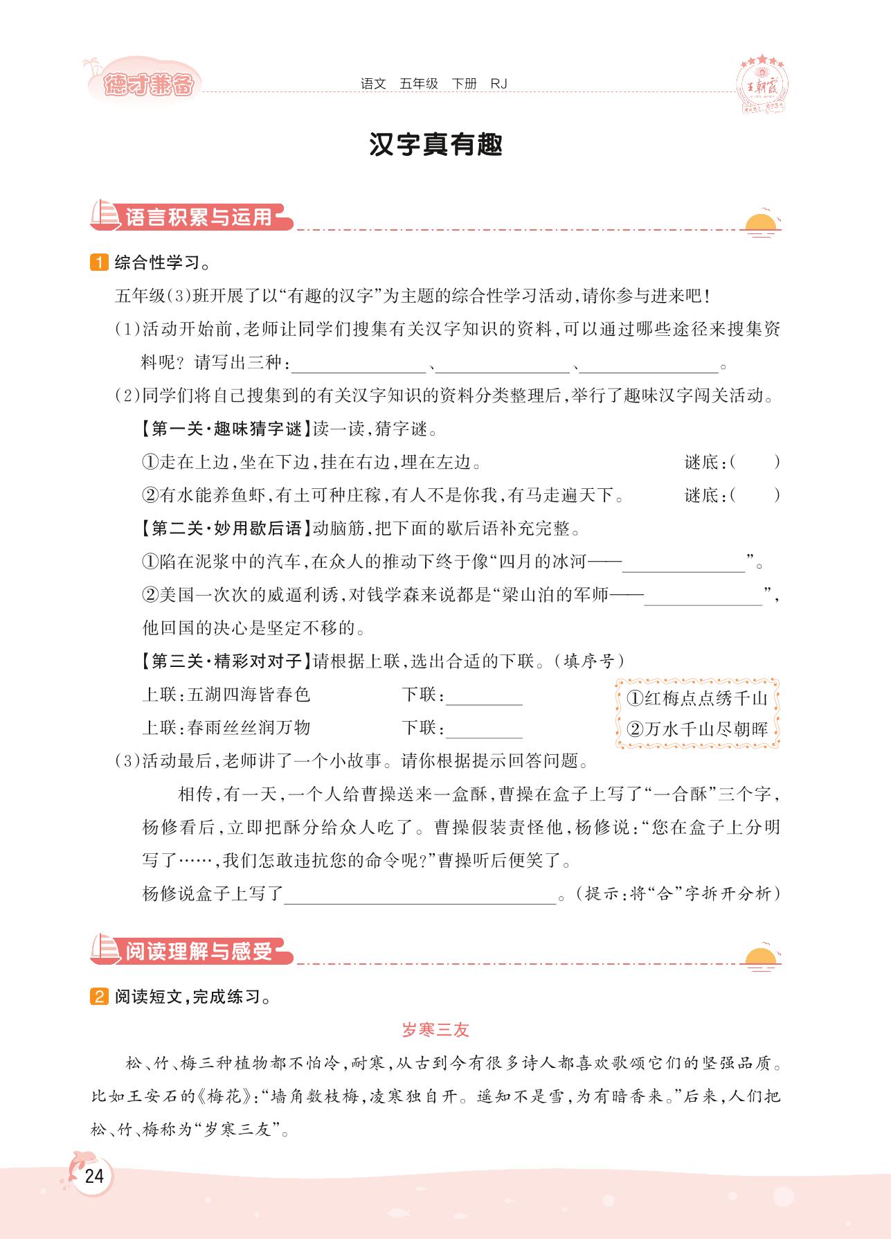 2022下册五年级语文人教版 第三单元 遨游汉字王国——汉字真有趣