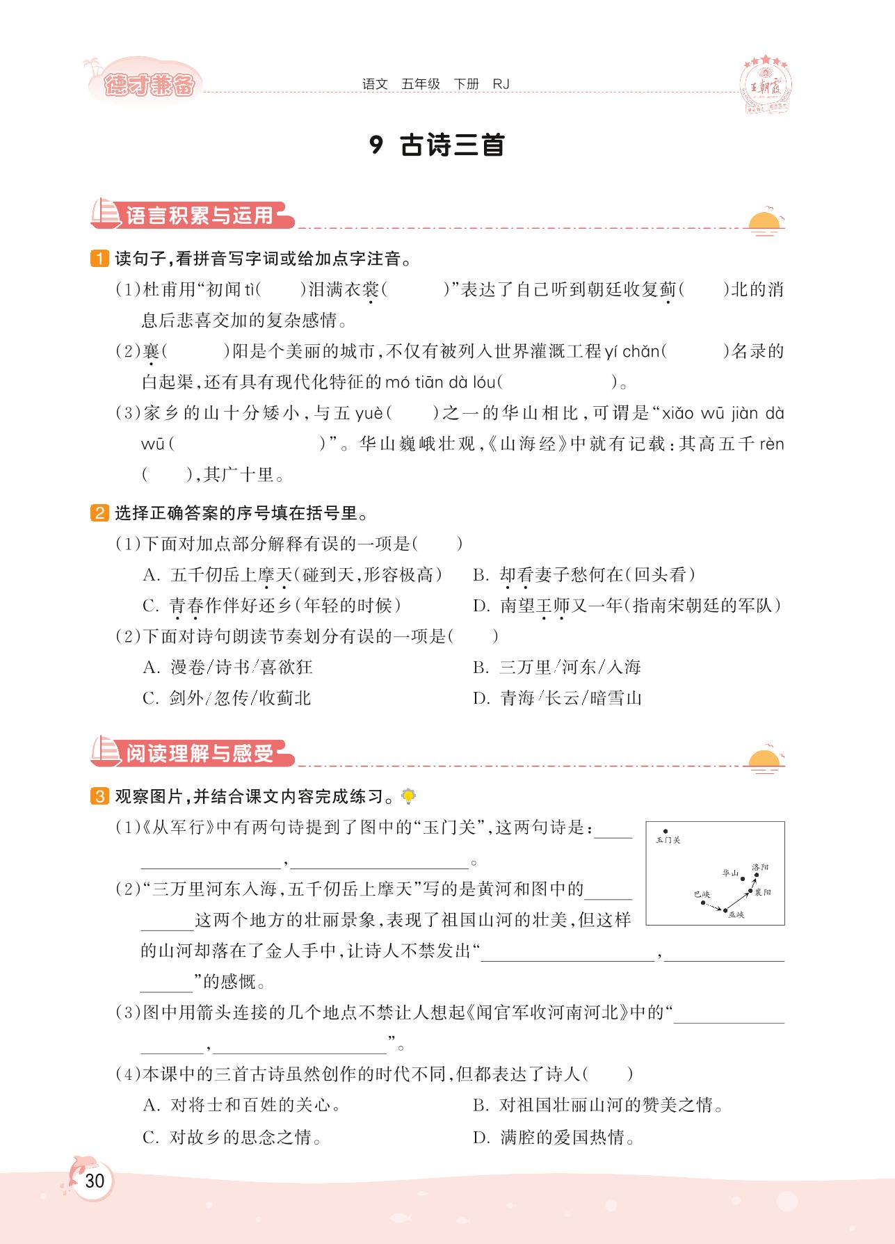 2022下册五年级语文人教版 第四单元 责任——9 古诗三首