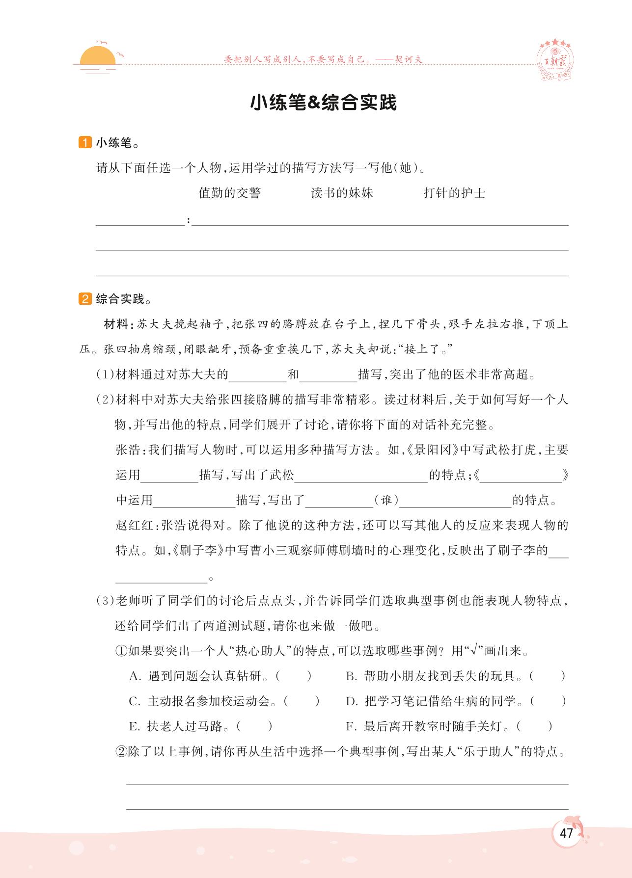 2022下册五年级语文人教版 第五单元 习作——小练笔&综合实践