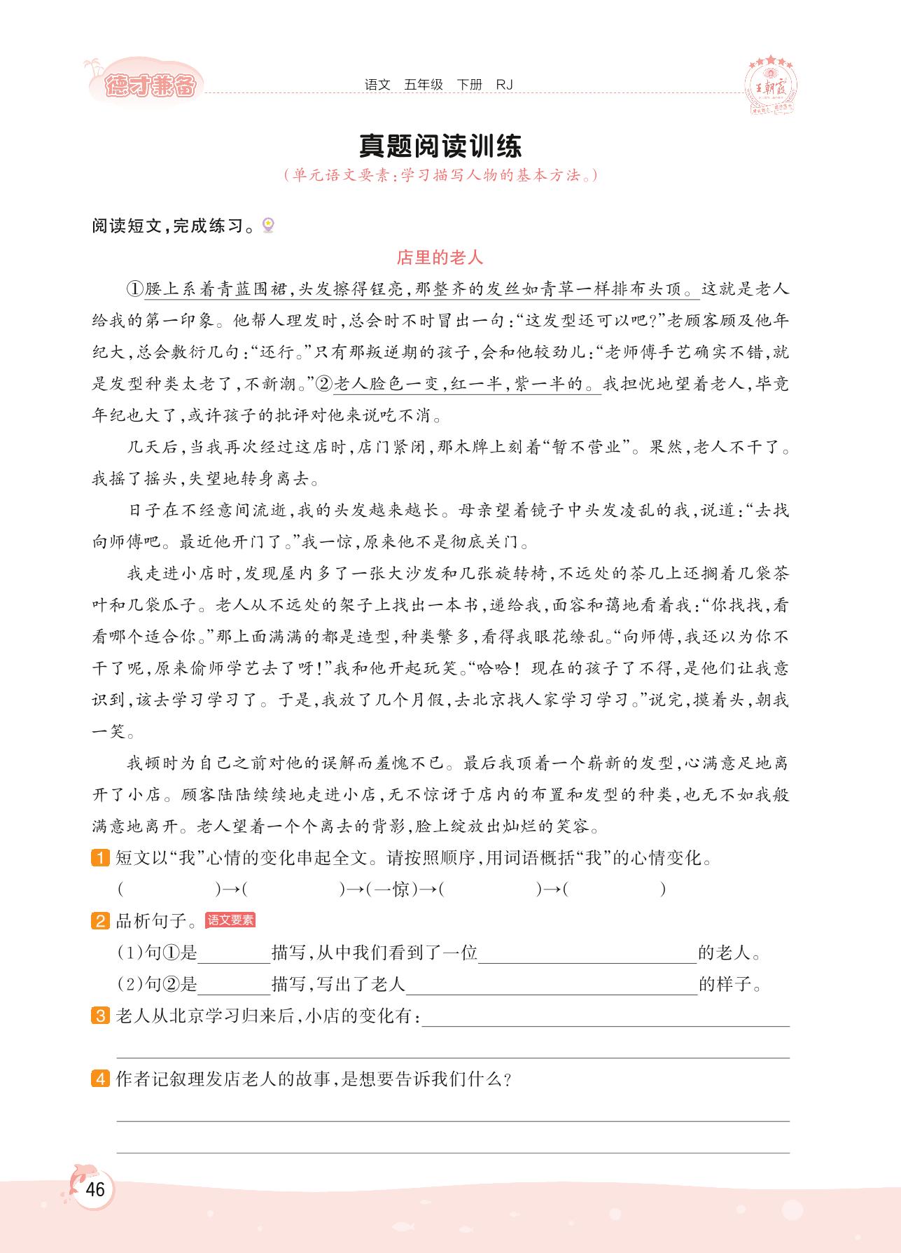 2022下册五年级语文人教版 第五单元 习作——真题阅读训练 (阅读提升)