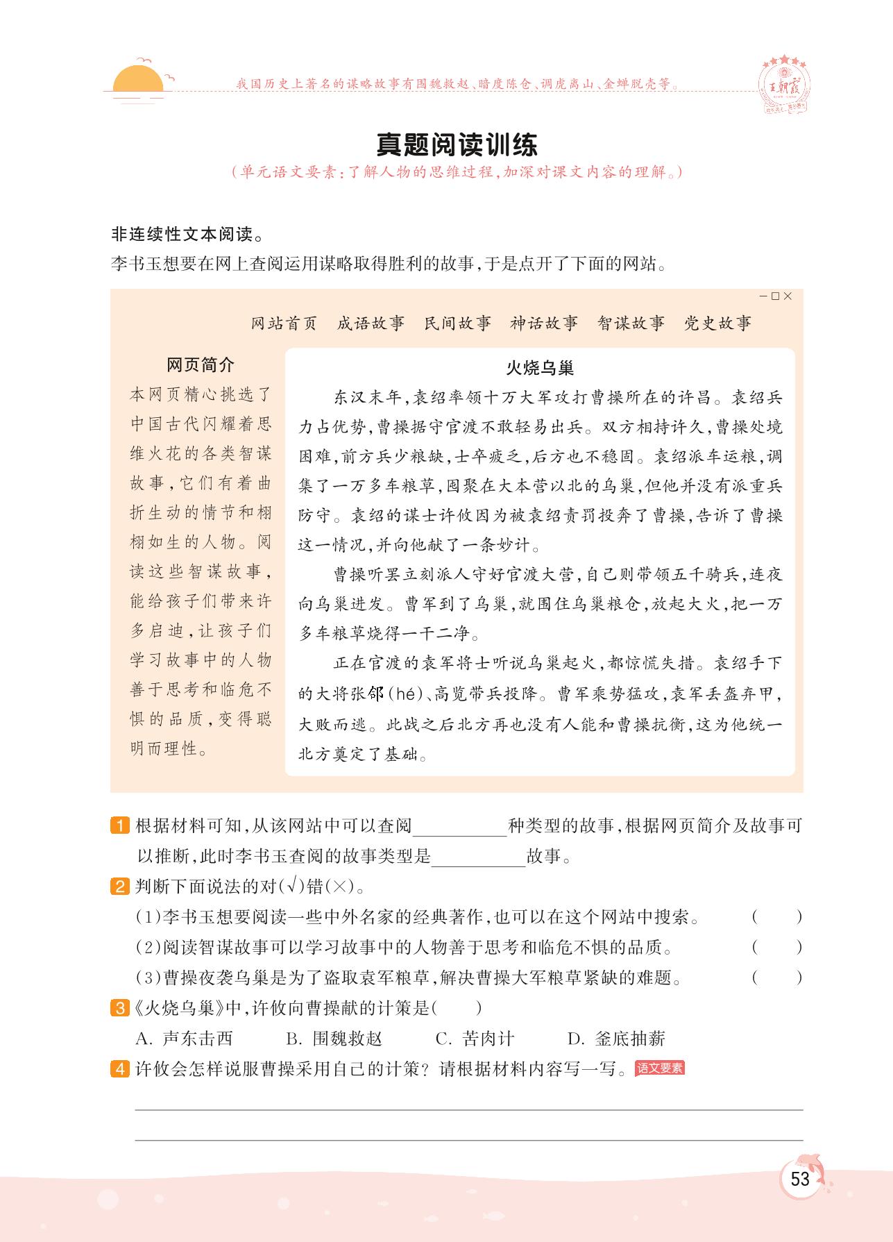 2022下册五年级语文人教版 第六单元 思维的火花——真题阅读训练