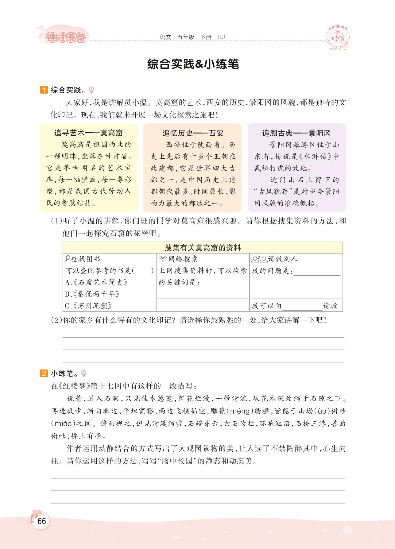 2022下册五年级语文人教版 第七单元 世界各地——综合实践&小练笔