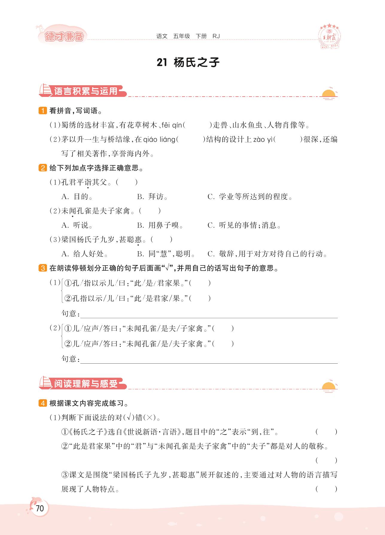 2022下册五年级语文人教版 第八单元 风趣与幽默——21 杨氏之子