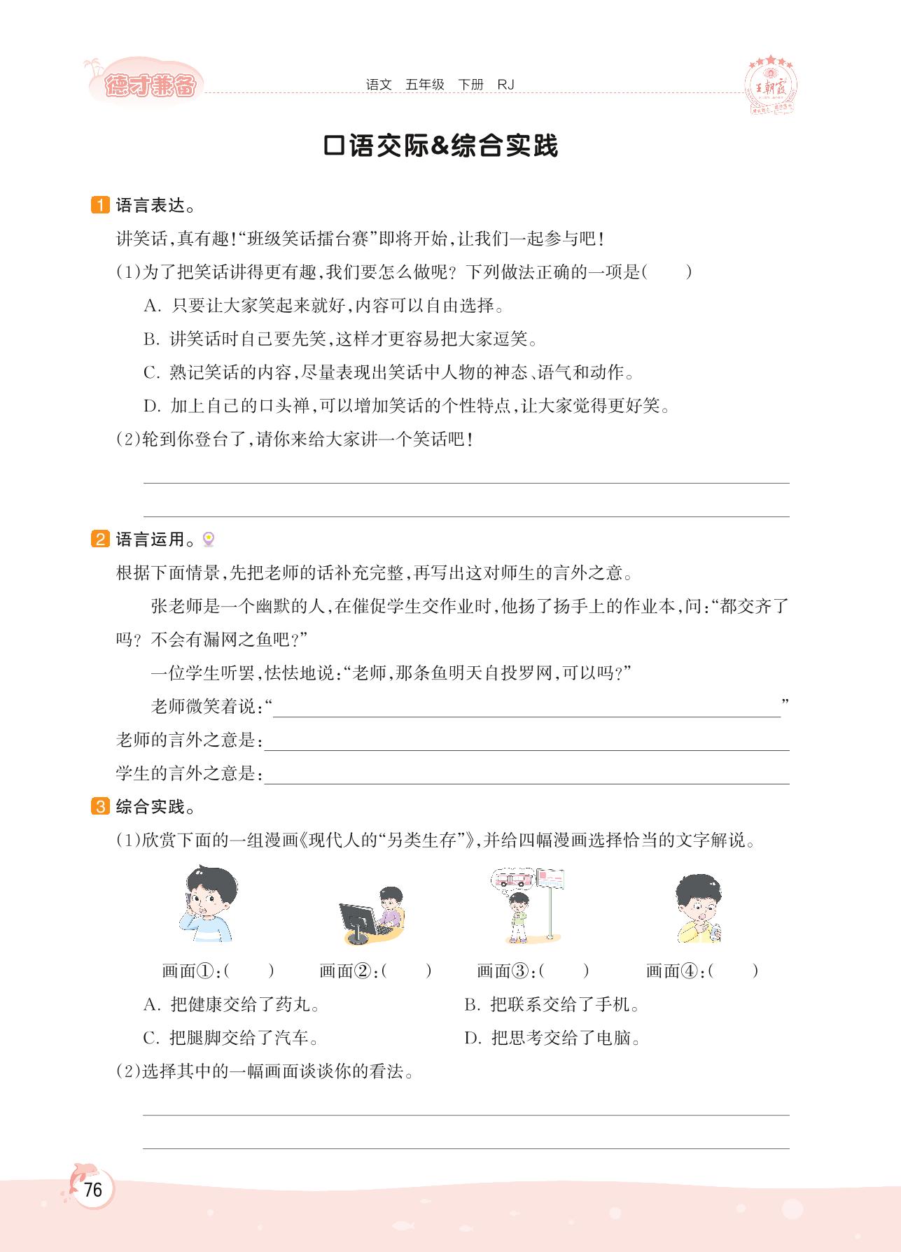 2022下册五年级语文人教版 第八单元 风趣与幽默——口语交际&综合实践