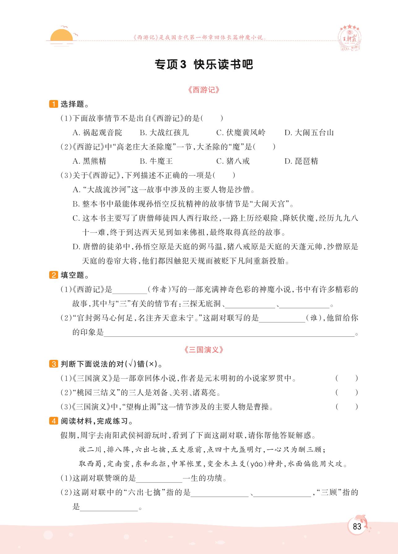 2022下册五年级语文人教版 新题新视野 专项训练——专项3 快乐读书吧