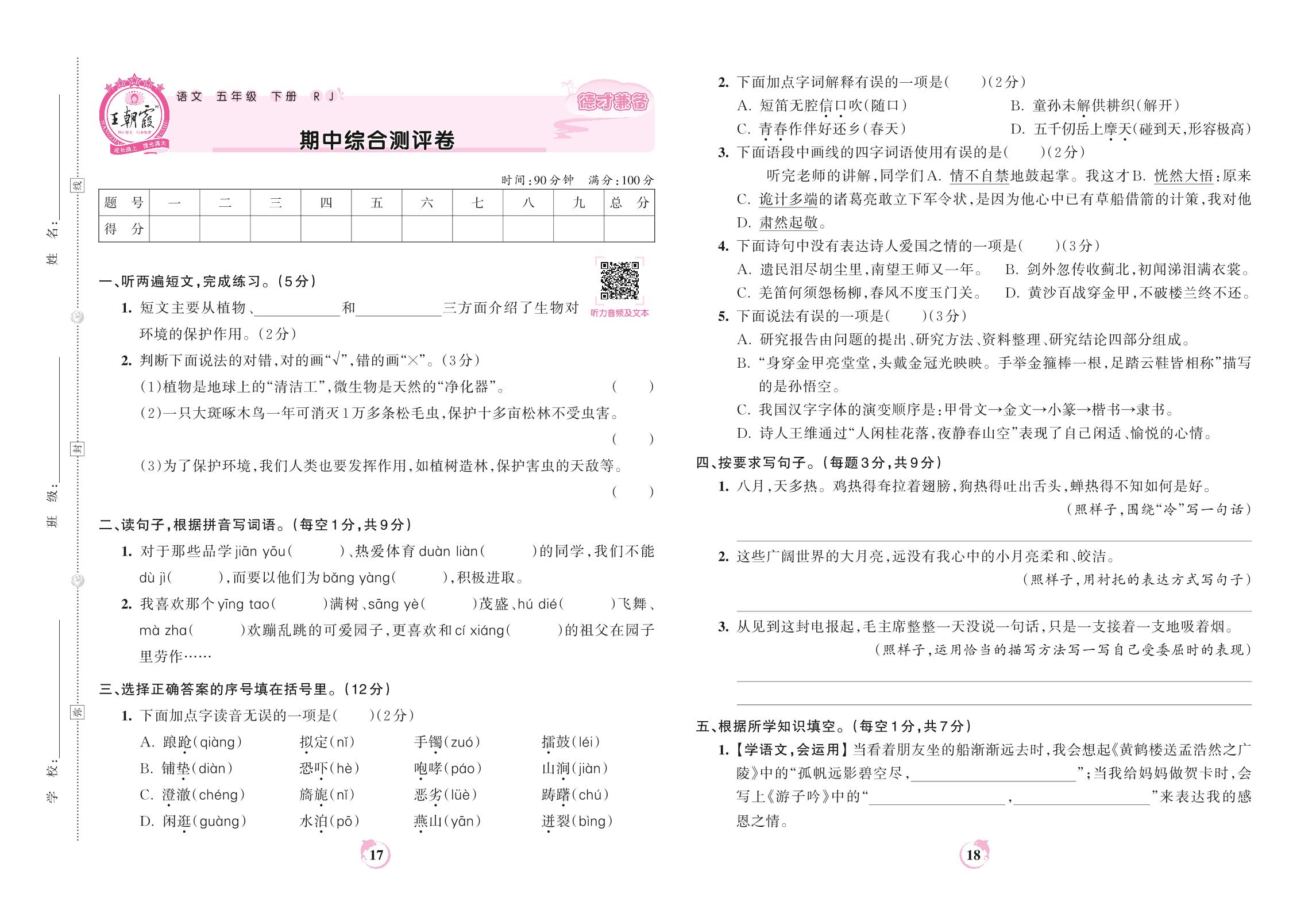 五年级语文人教版下册期中卷