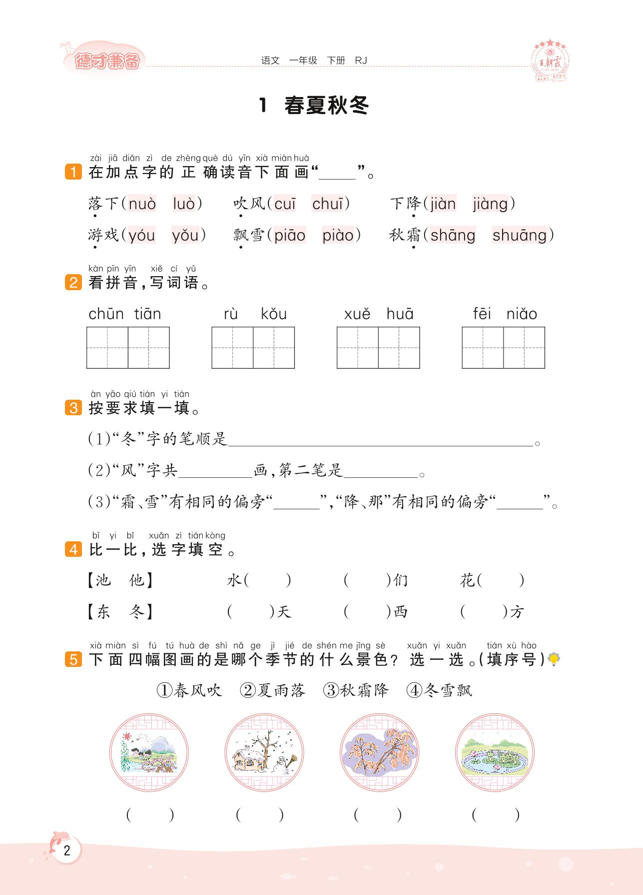 2022下册一年级语文人教版 第一单元 识字——1 春夏秋冬