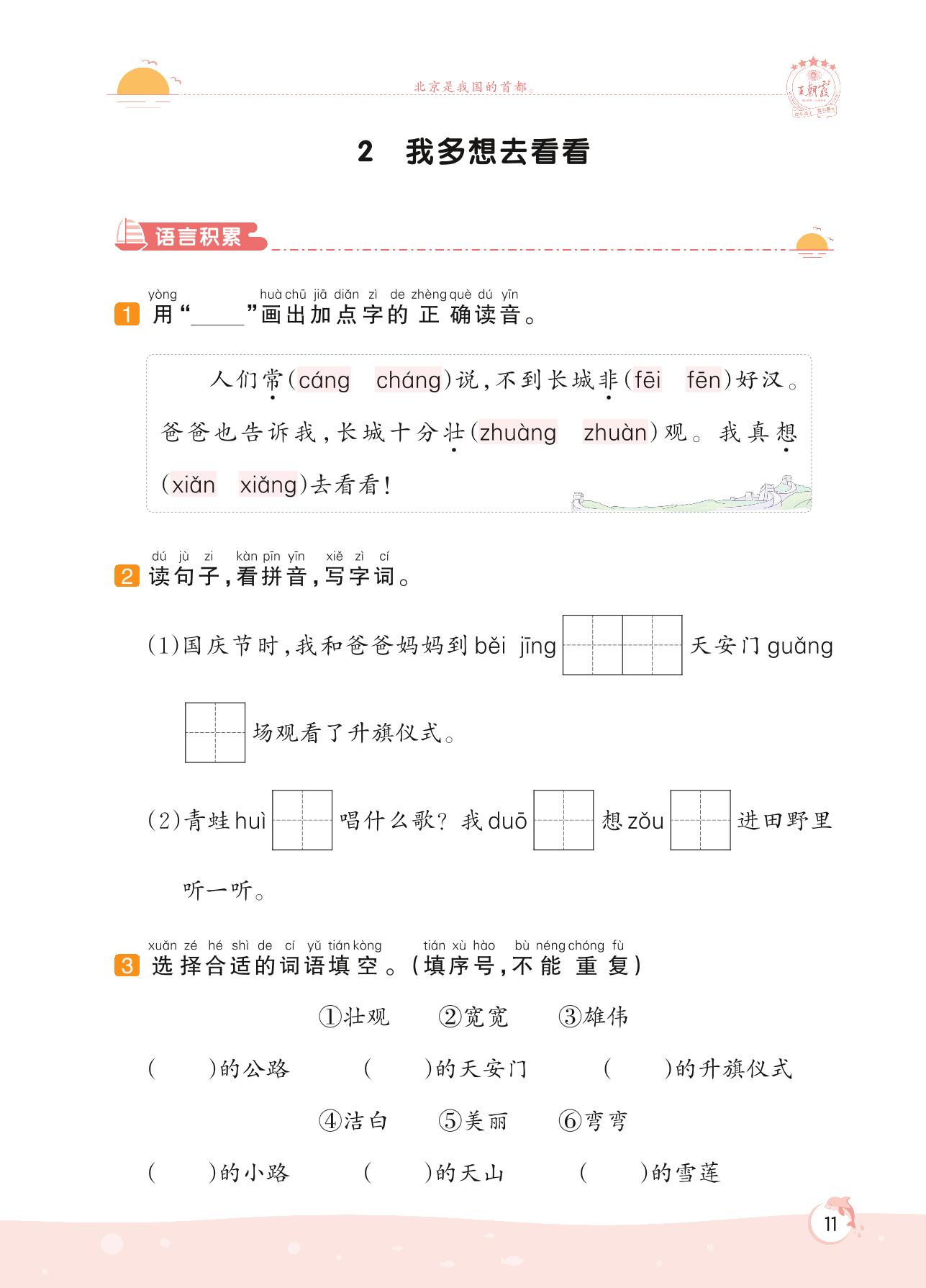 2022下册一年级语文人教版 第二单元 心愿——2 我多想去看看