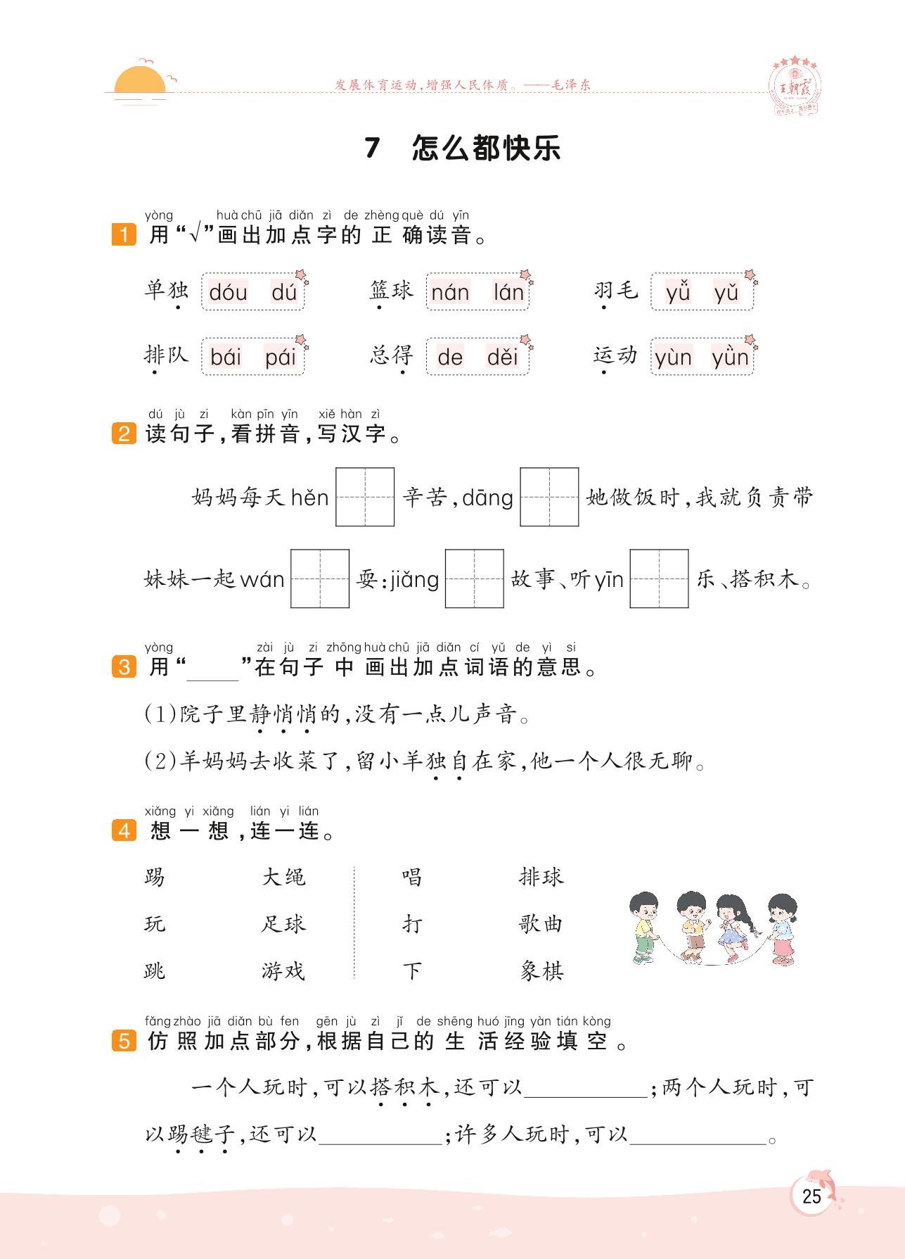 2022下册一年级语文人教版 第三单元 伙伴——7 怎么都快乐