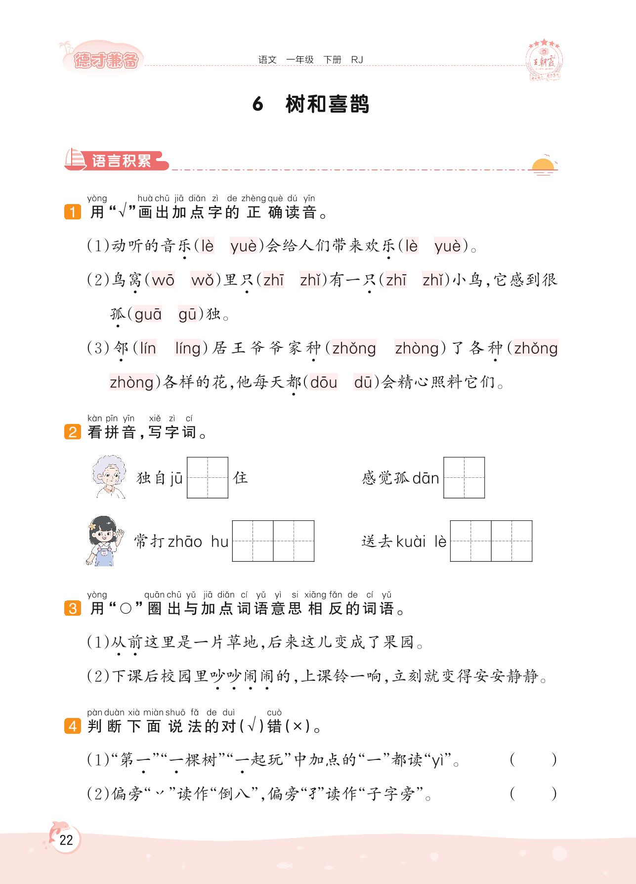 2022下册一年级语文人教版 第三单元 伙伴——6 树和喜鹊